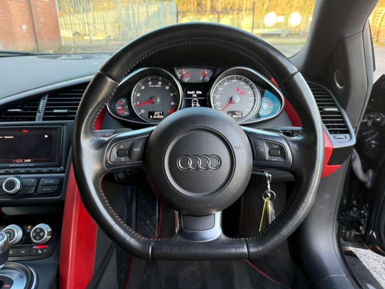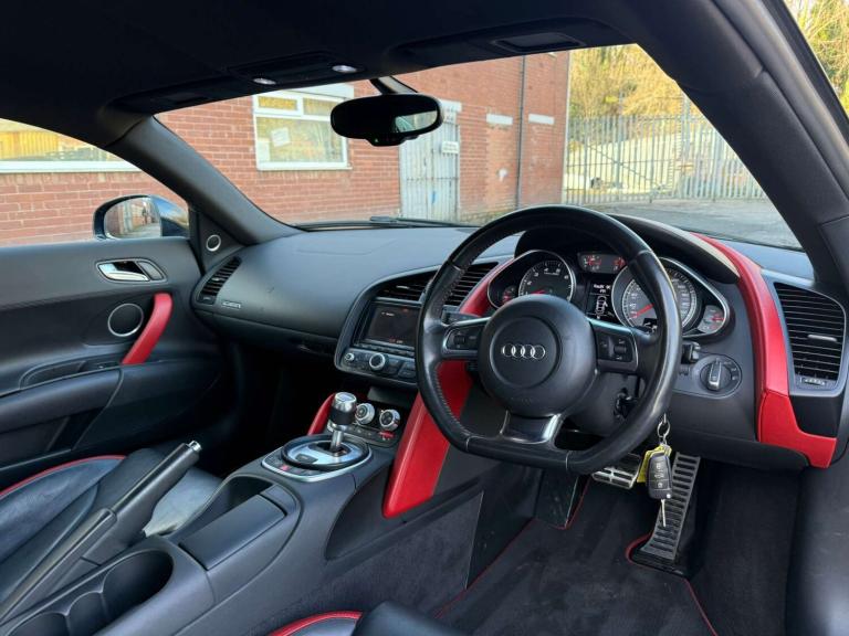 2012 Audi R8 4.2 V8 Le Mans Edition R-Tronic – 1 of 100 UK Cars – Huge Spec – Main Dealer HistoryA rare opportunity to own a genuine Le Mans Edition R8, one of only 100 built for the UK, with around 60 supplied in R-Tronic. Finished in Phantom Black Pearl with Lava Grey side blade and equipped with £11,645 of Audi factory options, this is an exceptional and highly collectible example.Key Highlights• 1 of only 100 UK Le Mans Edition cars• Rare R-Tronic variant (approx. 60 produced)• 88,627 miles• 7 Audi Main Dealer services• HPI Clear – no finance, no theft, no write-off• 3 former keepers (last owner 5+ years)• £103,245 original list price• Limited-edition styling & interior enhancementsLe Mans Edition Features• Exclusive trim & detailing• Unique interior enhancements• Special edition badging & finishes• Limited UK allocation (100 units)A rare, collectible specification increasingly sought after by enthusiasts and future investors.Factory Options (£11,645 of extras)• Audi Exclusive Leather Package 1 – £2,400• Audi Magnetic Ride – £1,380• Audi Parking System Advanced (camera + sensors) – £1,275• Audi Exclusive Monoposto Design Package – £1,225• Bang & Olufsen Premium Sound System – £1,225• Electrically Adjustable Seats – £850• Pearl Effect Paint – £715• Illuminated R8 Door Sills – £640• R8 Logo Floor Mats – £455• Bluetooth & Voice Control – £450• Heated Seats – £280• Coloured Stitching – £275• Audi Music Interface – £255• Cruise Control – £220Condition & ProvenanceA beautifully presented, well-maintained car with full HPI clarity, strong main dealer history and the correct ownership pattern. The naturally aspirated 4.2 V8 paired with the R-Tronic gearbox delivers a raw, engaging, unmistakably analogue supercar experience.All checks clean:• Stolen – Clear• Finance – Clear• Insurance Write-Off – Clear• Mileage Concerns – Clear• Export/Scrap – No markersExactly the type of provenance expected for a limited-edition R8.Keeper History• Keeper 1: 2012–2013• Keeper 2: 2013–2020• Keeper 3: 2020• Current Owner: 2020–PresentSummaryA rare Le Mans Edition R8 with excellent history, huge specification and complete clarity. With only 100 UK cars and rising demand for limited-edition analogue supercars, this example is ideal for both collectors and enthusiasts.Nationwide delivery available – call us for a personalised price to your front door!