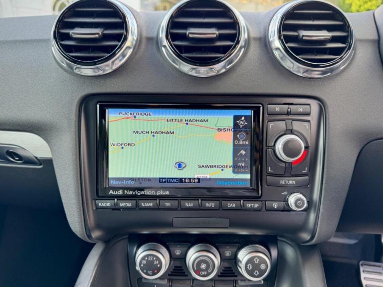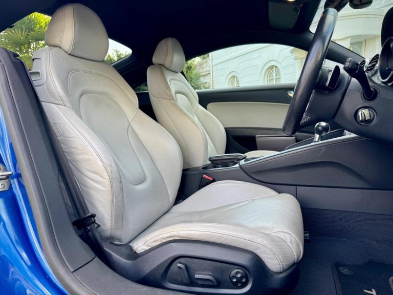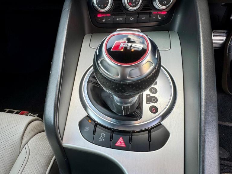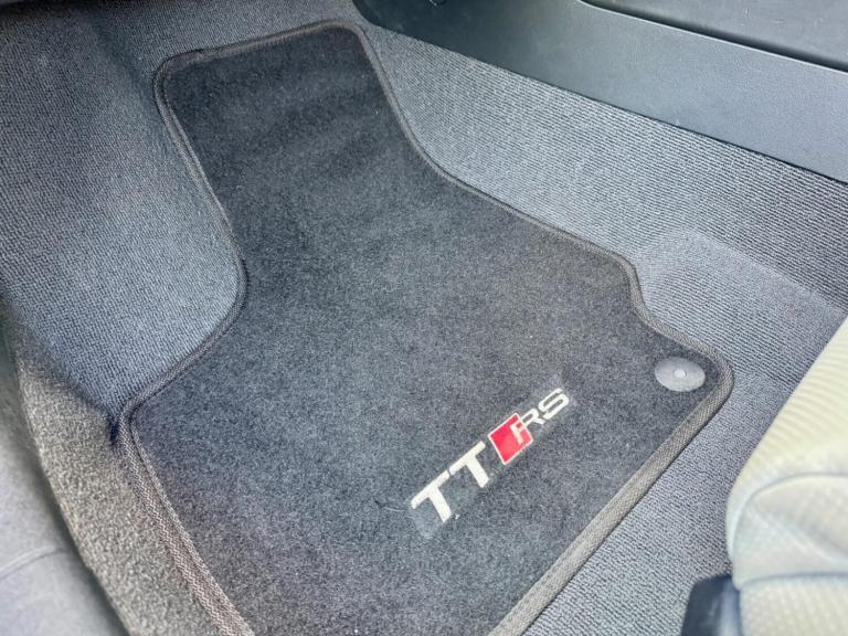 SAT NAV+GREY LEATHER+ELECTRIC HEATED SEATS+PARK SENSORS+ELECTRIC FOLDING MIRRORS+CRUISE CONTROL+LUMBAR SUPPORT+19'' ALLOYS+HIGH SPEC WITH RECENT BIG SERVICE+PRIVATE PLATE INCLUDED. This 2012 Audi TT RS TFSI RS boasts a full service history, offering peace of mind for its next owner. Under the bonnet, a powerful 2.5 litre petrol engine paired with four wheel drive ensures an exhilarating driving experience. This model is equipped with heated, electrically adjustable, folding, and auto dimming door mirrors, a comfort pack, and stylish 19 inch alloy wheels in a titanium finish. Inside, you'll find front electric adjustable seats and a DVD based satellite navigation system to guide your journeys. The generous boot space provides ample room for your luggage. Experience impressive performance with this Audi TT RS, capable of accelerating from 0 to 62 miles per hour in a swift 4.4 seconds. This rapid acceleration demonstrates how this vehicle offers a more dynamic drive compared to many other cars in its class. The combination of its potent engine, advanced drivetrain, and well appointed features makes this TT RS a compelling choice for those seeking both performance and practicality.