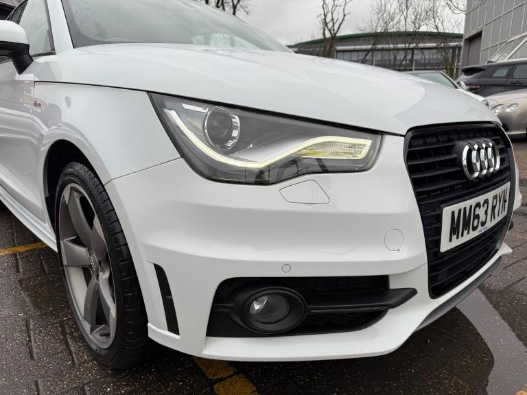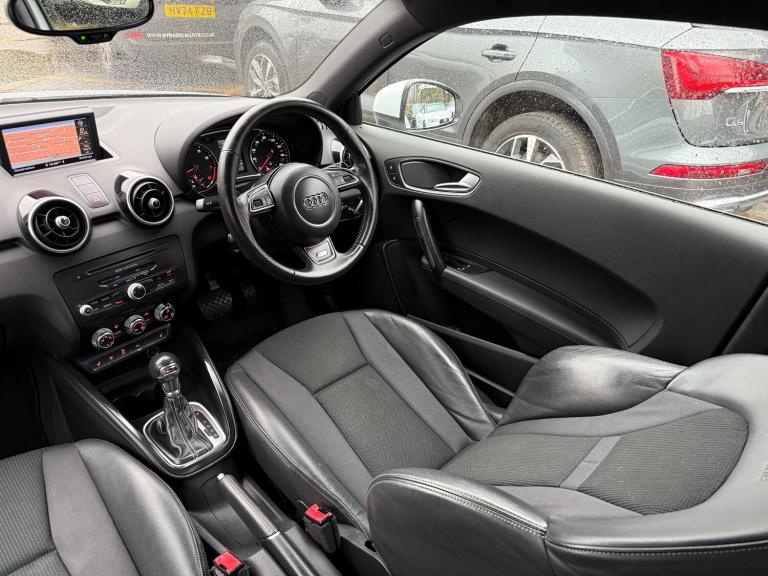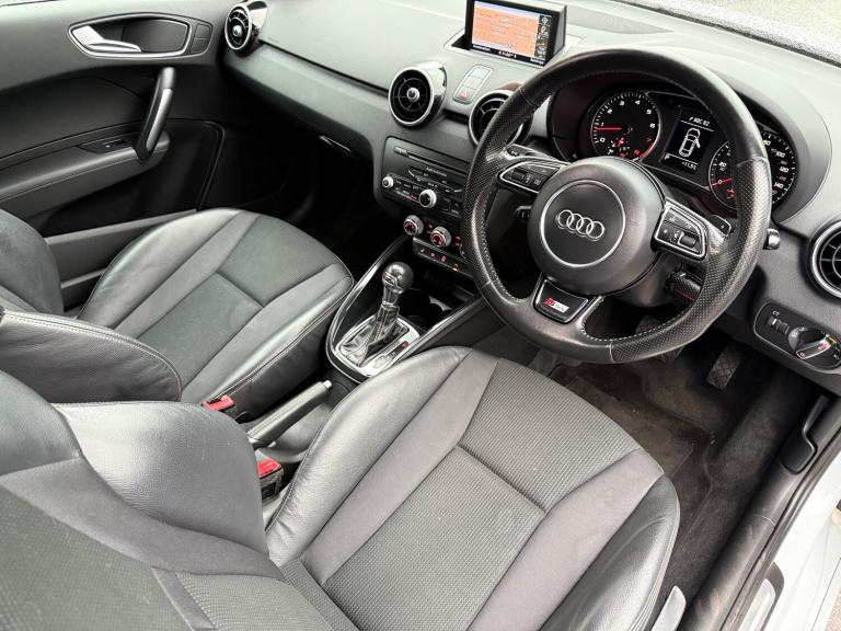 2 KEYS, ULEZ FREE, FRESH SERVICE (TOTAL 4 SERVICES), MOT FRESH, NAVIGATION, BLUETOOTH, PARKING SENSORS, 3 FORMER KEEPER This 2013 Audi A1 1.4 TFSI Black Edition Hatchback with a mileage of 75400 miles is a sleek and stylish choice, boasting a 3-door hatchback design and seating for 4. Powered by a petrol engine, this vehicle is ULEZ compliant and comes with an MOT that expires on 28/12/2025. The car features 18in Alloy Wheels, Air inlet blade, and diffuser insert in Platinum grey, Anti Theft Locking Wheel Bolts, and a Black Styling Package. Additionally, the body-colored door mirrors come with integrated indicators, adding to the car's contemporary appeal. With its Euro 5 rating and S Tronic transmission offering 185 ps, this Audi A1 is the perfect combination of performance and style. Features Include: , 18in alloy wheels - 5-arm rotor design titanium finish, air inlet blade and diffuser insert in platinum grey, anti theft locking wheel bolts, black styling package, door mirrors - body coloured with integrated indicators, door mirrors - electrically adjustable and heated, electric windows - front, fog lights - matt black surrounds, heat insulating glass - windscreen and side windows, heated rear windscreen, heated windscreen washer jets, light and rain sensor package, privacy glass, radiator grille and frame - highly polished black, sunband for windscreen, tyre repair kit, 6.5in display screen, aux-in socket, amplifier - 6 channel, audi sound system, concert radio - mp3-cd player, mobile telephone preparation - bluetooth interface, sd card reader, abs - anti-lock braking system, asr - anti slip regulation, airbags - driver, airbags - front passenger, airbags - front side system, airbags - head system, alarm - thatcham category 1, audi hill hold assist, ebd - electronic brakeforce distribution, esp - electronic stability programme, first aid kit, front passenger airbag deactivation switch, isofix child seat preparation for rear seats, immobiliser, remote central locking with 2 fold away keys, seat belt reminder for all seats, warning triangle, air vent sleeves - high gloss black, aluminium trim for control switches, ambient lighting, automatic wipers with rain sensor, cloth headlining in black, door handles - illuminated, door sill trims - aluminium with s line logo, electronic climate control, floor mats, front reading lights, front sports seats, glovebox - illuminated, handbrake grip - leather, head restraints - rear, headlights - dynamic range
