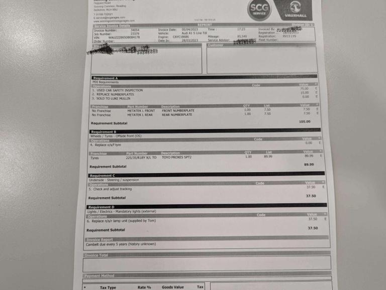 - Original number plateAdvisoryDifferent number plates are commonplace. Ensure the number plates on the car match the V5C documentation. Be sure of what number plate comes with the car you are buying.