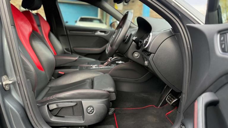 A beautiful Monsoon Grey Audi S3 with some fantastic factory options, and even better — it has had only 2 owners from new and has covered just 37,000 miles. We’ve got 2 keys and a full service history, and we’ve just carried out a major service along with replacing the front brake pads. This S3 is a real credit to its former keepers, with the first owner being Epsom Audi and the second owner having cared for the car since March 2014.Delivery inspection carried out on 10.09.2013 at 0 miles by Audi Service 00134, 1st service on 19.01.2015 at 8,518 miles (oil change service) by Audi Service 00045, 2nd service on 05.09.2016 at 13,927 miles (inspection with oil change) by Audi Tunbridge Wells, full service and Haldex service on 30.01.2020 at 23,979 miles by Baker Engineering, water pump unit replaced on 22.02.2023 at 29,189 miles by Baker Engineering, full service on 20.02.2025 at 34,554 miles by Baker Engineering, and a full service on 24.11.2025 at 37,269 miles by SMT Automotive Ltd.18-inch 5-parallel spoke partly polished alloy wheels, rear parking sensors, front parking sensors, LED adaptive xenon headlamps with headlamp washer jets, chrome wing mirror casings, electric windows front and rear, electrically adjustable heated door mirrors, automatic headlamps and wipers, flat-bottom three-spoke steering wheel with paddle shifters and radio controls, adaptive cruise control, USB input, auto hold assist, satellite navigation, ambient lighting, heated seats, dual climate control, Bluetooth, Driver Assistance Pack, Audi Side Assist, Bang & Olufsen sound system, electrically adjustable four-way lumbar support, Piano Black inlays, Active Lane Assist, Parade Red Design Package with Parade Red/Black leather seats and matching stitching, Technology Package, and High-Beam Assist headlights.We are a family-run independent dealership specialising in hand-selected prestige and performance vehicles. Every car is chosen for its specification, history, ownership and overall condition, and prepared with the same care and pride we put into our own vehicles. Our aim is to offer a buying experience that is honest, personalised and centred around you.To provide the highest level of service, we operate on an appointment-only basis. This ensures the car you are interested in is still available, on site, and ready for a dedicated viewing or test drive. By booking ahead, we can give you our full attention, avoid any disappointment, and make your visit relaxed and enjoyable.We follow a fixed-price policy to maintain clarity, fairness and exceptional standards. By not negotiating on price, we are able to focus on presenting every vehicle in excellent condition for its age and mileage. Each car is meticulously prepared and represents strong value compared to similar models, giving you complete confidence in the quality of what we offer.Every vehicle includes a new MOT (if under 6 months remain), a full service (if due within 5 months or 5,000 miles), a timing belt kit replacement where required, an HPI check with certificate, and a 6-month parts and labour warranty. Our warranty provides full labour-rate cover, including main dealer labour rates, and a claim limit equal to the full value of the car for maximum protection. You can also extend this cover to 12, 24 or 36 months through Warranty Solutions Group.For added convenience, we offer virtual live video viewings so you can explore the car from home. During the appointment we can show you all paperwork, keys and features, and answer any questions. Nationwide delivery is also available, bringing your chosen vehicle directly to your door.To book an appointment or arrange a virtual viewing, please contact us — we’re here to help every step of the way.