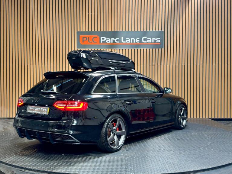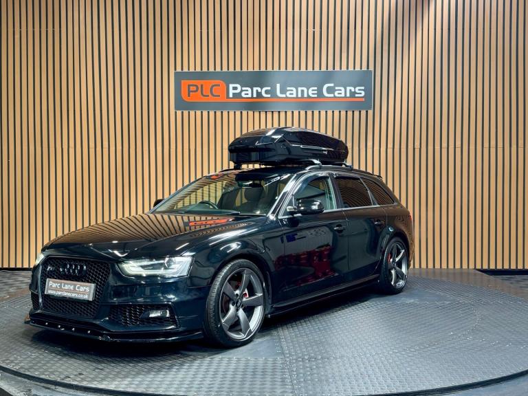 PARC LANE CARS OF GOSFORTH PRESENT THIS BEAUTIFUL AUDI A4 S LINE BLACK EDITION AVANT. FINISHED IN PHANTOM BLACK PEARL WITH STUNNING HALF VIENNA LEATHER/CLOTH INTERIOR TRIM! THIS A4 AVANT HAS COVERED ONLY 93000 MILES AND COMES WITH A COMPREHENSIVE SERVICE HISTORY. SERVICED AT THE FOLLOWING INTERVALS; 14592 MILES - 31/03/[Phone number removed] MILES - 22/09/[Phone number removed] MILES - 24/10/[Phone number removed] MILES - 05/11/[Phone number removed] MILES - 16/09/[Phone number removed] MILES - 16/06/[Phone number removed] MILES - 13/08/2024 - TIMING BELT SUPPLIED WITH 2 REMOTE KEYS AND FITTED WITH THE FOLLOWING FACTORY EXTRAS; ROOF BOX CARBON SPEC AERO KIT BLUETOOTH CRUISE CONTROL AND MUCH MUCH MORE.... THIS CAR IS SIMPLY STUNNING AND IS NOT TO BE MISSED!! FINANCE IS AVAILABLE AND PART EXCHANGE IS WELCOME REG NO. CP62OLO ** LISTED SPECIFICATION IS SHOWN AS ACCURATELY AS POSSIBLE. ERRORS MAY OCCUR. PLEASE ASK US TO CLARIFY IF YOU HAVE ANY QUERIES. ** Features Include: , 12v power socket - centre console, 12v power socket - luggage compartment, 6.5in display screen, ami - audi music interface, aux-in socket, bang and olufsen sound system, concert radio - mp3/cd player, dab digital radio, mobile telephone preparation - bluetooth interface, sound package, speakers x14, 19in alloy wheels - 5-arm rotor design titanium finish, acoustic windscreen, anti theft locking wheel bolts, black roof rails, black styling package, bumpers - front and rear - s line design, diffuser - platinum grey, door mirrors - electrically adjustable and heated, electric windows - front and rear, privacy glass, radiator grille - matt black, radiator grille frame - highly polished black, s line badges on wings, s line side skirts, side radiator grilles in black honeycomb structure, space saver spare wheel, spoiler - roof, styling package - s line exterior, abs - anti-lock braking system, airbags - driver, airbags - front passenger, airbags - front side, airbags - head system, alarm - thatcham category 1, esp - electronic stability programme, electromechanical parking brake, first aid kit, front passenger airbag deactivation switch, isofix child seat preparation front and rear, immobiliser, remote central locking, warning triangle, auto-dimming rear-view mirror, automatic wipers with rain sensor, car jack, climate control - electronic 3-zone, cloth headlining in black, door sill trims - s line, electrically adjustable 4-way lumbar support, front centre armrest, front sports seats, front and rear floor mats, gear knob -