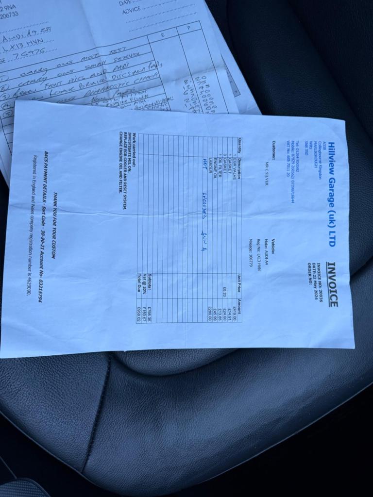 New cam belt and water pump!!!This 2013 Audi A4 Avant TDI SE Technik offers peace of mind with a clear vehicle history check and 12 months MOT provided on purchase, alongside a 3 month warranty. This well presented estate car features a 2.0 litre diesel engine and is in the SE Technik trim. It comes with partial service history, ensuring you have a good overview of its past maintenance.The Audi A4 Avant TDI SE Technik is equipped with desirable features that enhance your driving experience. These include Electronic 3 Zone Climate Control for personalised comfort, and Audi Parking System Plus with front and rear sensors, making parking easier. Additionally, the Bluetooth Interface allows for seamless mobile phone connectivity. This model also benefits from a low insurance group, indicating it could be more economical to own compared to similar vehicles.