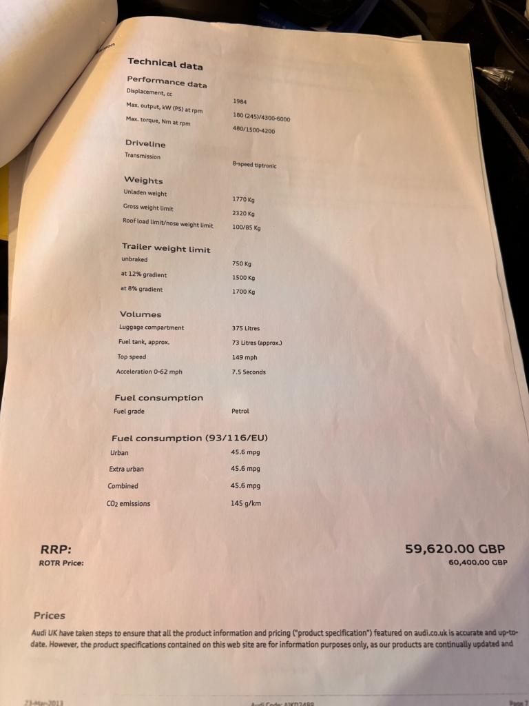 - Rare petrol-hybrid powertrain: 2.0 TFSI + electric motor, 245 bhp combined- Ibis White — striking and desirable colour