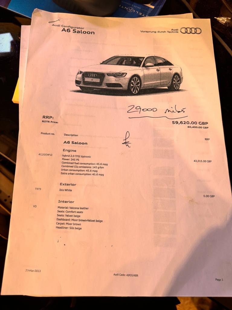 Posting for 2+ months2013 Audi A6 2.0 TFSI Hybrid 4dr Tip Auto SALOON Petrol/Electric Hybrid Automatic
