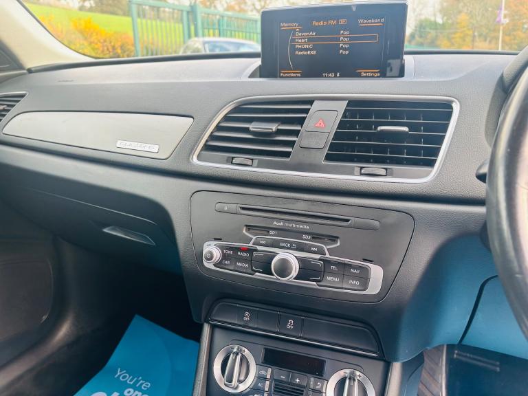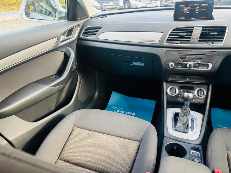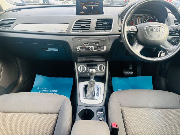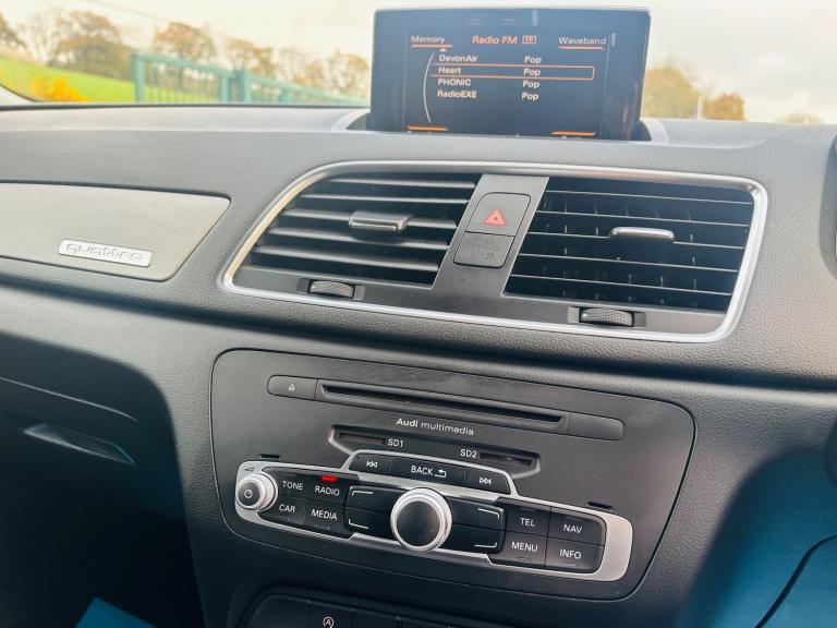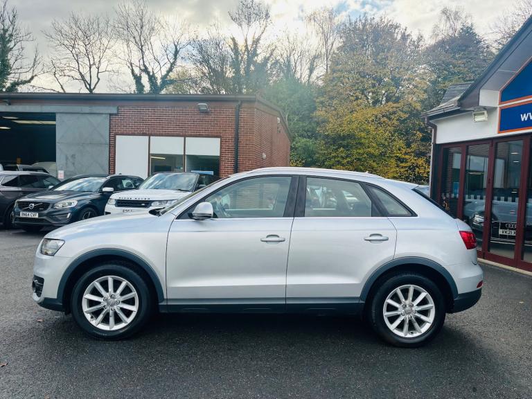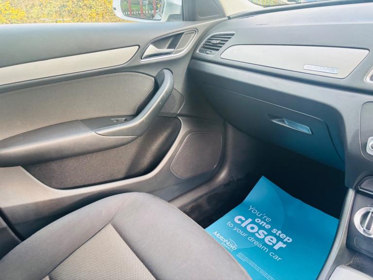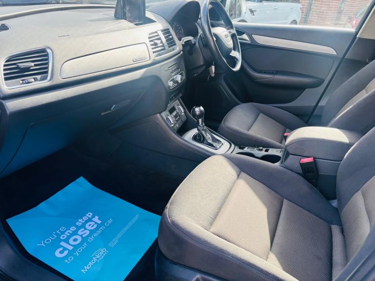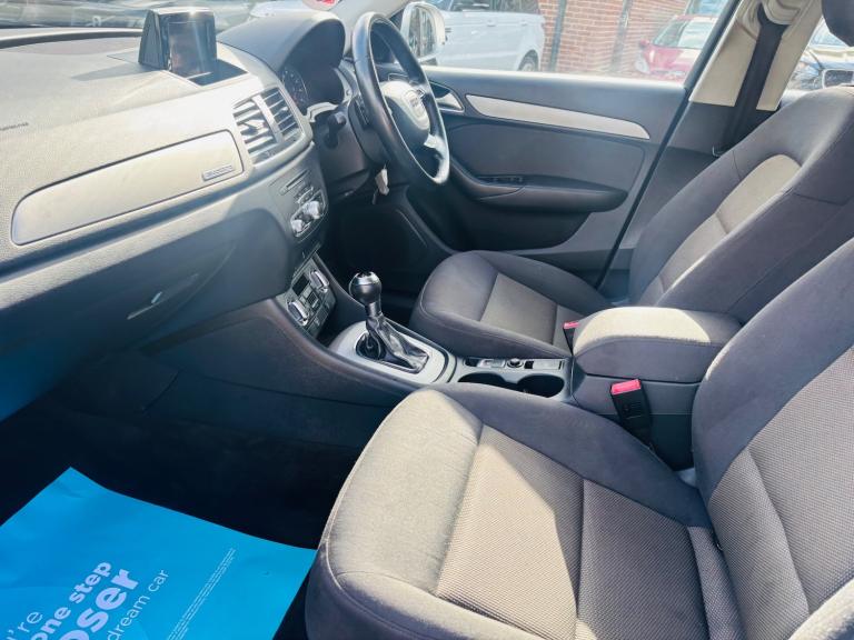 This 2013 Audi Q3 2.0 TDI SE SUV has been driven 117,707 miles and runs on diesel fuel. It comfortably seats 5 people with its 5-door spacious SUV design. Equipped with a 6.5-inch display screen, DAB digital radio, and Concert radio MP3/CD player, the car offers unbeatable entertainment options. Additionally, it features 12V power sockets in the rear centre console and Audi Music Interface for added convenience. The powerful 177 PS engine paired with the S Tronic quattro Euro 5 (s/s) transmission ensures smooth and efficient driving. Overall, this Audi Q3 offers both style and substance, making it an ideal choice for those in need of a reliable and family-friendly SUV. - Supplied with 12 months MOT - Service history - Finance available - Part exchange welcome - Extended warranties available Features Include: , 12v power socket - rear centre console, 6.5in display screen, ami - audi music interface, concert radio - mp3/cd player, dab digital radio, mobile telephone preparation - bluetooth interface, preparation for sd card-based navigation system, sdhc card reader x2, speakers x8, towbar preparation, 17in alloy wheels - 10-spoke design, anthracite metallic finish on bumpers-wheel arch trims-lower door trims, anti theft locking wheel bolts, door mirrors - body coloured with integrated led indicators, door mirrors - electrically adjustable and heated, electric windows - front and rear, heated windscreen washer jets, roof rails - aluminium, space saver spare wheel, sunband for windscreen, window surrounds - aluminium, abs - anti-lock braking system, asr - anti slip regulation, airbags - driver, airbags - front passenger, airbags - front side, airbags - head system, alarm - thatcham category 1, ebd - electronic brakeforce distribution, esp - electronic stability programme, electromechanical parking brake, first aid kit, front passenger airbag deactivation switch, isofix child seat mounting for front passenger, isofix child seat preparation for rear seats with top tether, remote central locking with 2 fold away keys, seat belt reminder, thatcham category 1 immobiliser, warning triangle, automatic wipers with rain sensor, car jack, cloth headlining, door sill trims with aluminium inlay, dual-zone electronic climate control, folding storage compartment in front centre armrest, front centre armrest - adjustable, front and rear floor mats, glovebox - ventilated, inlays - monometallic platinum, rear air vents in rear centre console, reversible luggage