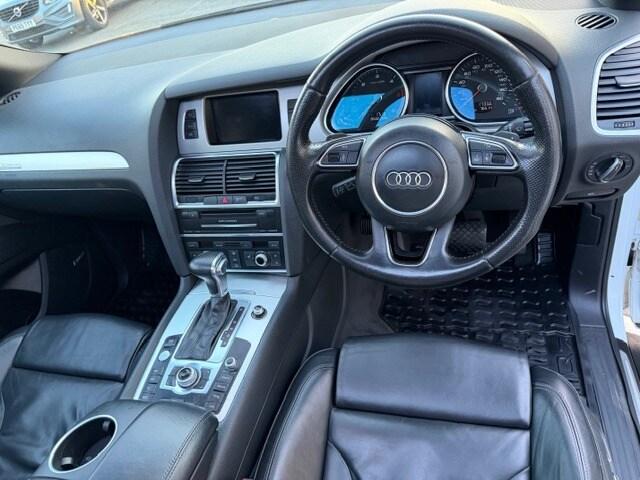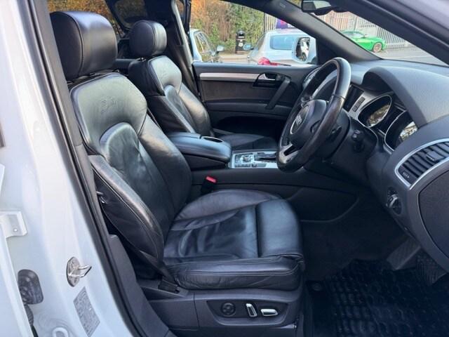 This huge spec 2013 13-Reg Audi Q7 3.0 TDI S-Line Plus Quattro (7 Seater) Automatic must be seen!!! Presented in lovely Alpine white with Full Black Verano Leather-plus upholstery with electric sports seats, it has covered just 76,000 miles from new with SH and just one owner from new!!!, it is the facelift model and comes with over £10,000 Worth of Extras!!! these include Full Factory Panoramic sunroof dark tinted, factory satellite navigation and Bluetooth phone prep, BOSE Surround Sound System, Audi Music Interface (AMI), Comfort package, Brembo Brakes, Auto Lights and Wipers, Xenon headlamps with LED daytime running lights, High-beam assist, Colour Driver's Information System (DIS), 7 seats, electric heated seats, Seat heating for front and outer rear seats, Audi exclusive Matt brushed aluminium inlays, colour drivers information system, folding exterior mirrors, privacy glass, Stainless Steel side steps, 21 x 10J '5-segment-spoke' design titanium alloy wheels with 295/35 R21 Y tyres , cruise control, digital climate control, Deluxe automatic air conditioning at the rear, cruise control, Audi parking system advanced with corner view and 360 degree camera, Electric tailgate, Black styling pack, fully colour coded exterior, one of the best you will find anywhere!!!