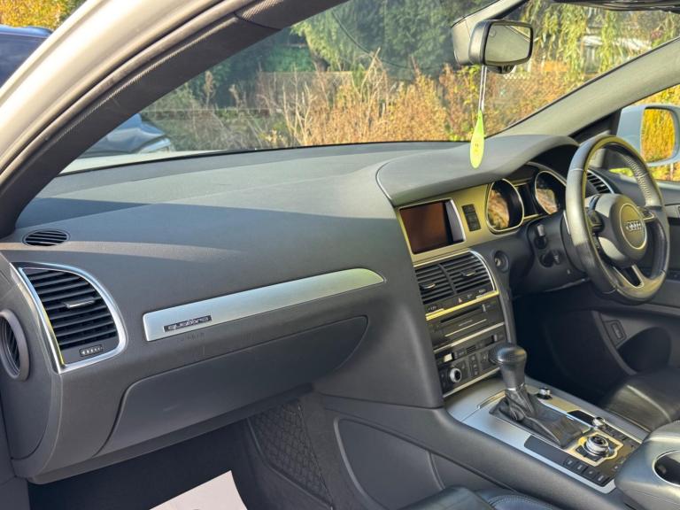 SERVICE HISTORY - 5 SERVICESLOGBOOKK2Equipment:Navigation HDD - mappedParking Sensor(s)Climate ControlLeather Trim7 Seats21'' Alloy WheelsPrivacy GlassThis 2013 Audi Q7 TDI V6 S line Plus boasts exceptionally low mileage for its age, with only 91,116 miles recorded. This impressive seven seater SUV features a powerful 3.0 litre diesel engine paired with Audi's renowned four wheel drive system, ensuring confident performance in all conditions. The S line Plus trim level enhances its sporty appeal, and you can drive with peace of mind knowing its vehicle history check is clear. Inside, you'll find comfort and convenience with heated front seats and dual zone electronic climate control, while Bi Xenon Plus headlights provide excellent visibility.The Audi Q7 TDI V6 S line Plus offers a compelling package, highlighted by its remarkable acceleration of 0 to 62 miles per hour in just 7.8 seconds, demonstrating its dynamic capability. Its substantial towing weight of 3200 kg makes it ideal for those needing to tow, and the generous boot space provides ample room for luggage or shopping, setting it apart from many other vehicles in its class. Furthermore, its placement in a low insurance group offers an added benefit for cost conscious owners, making this Q7 a practical and desirable choice.