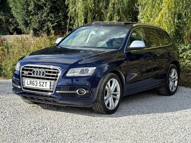 3 FORMER KEEPERS2 KEYSSERVICE HISTORY - 6 SERVICES - 5 MAIN DEALER SERVICESLOGBOOK4,940 WORTH OF EXTRASOptional Equipment when new4,940inc. VATTechnology pack1,695Open sky panoramic sunroof1,125Crystal effect paint865Power operated tailgate385Privacy glass380Heated front seats300Door mirrors, electrically adjustable, heated and folding190Estoril blue, crystal effect-Lunar silver/Black Fine Nappa Leather-Matt-brushed aluminium-Total price when new48,015inc. VATEquipment:Navigation HDDParking Sensor(s)Climate ControlLeather TrimSpace Saver Spare Wheel20'' Alloy WheelsPanoramic RoofPrivacy GlassThis 2013 Audi SQ5 BiTDI V6 stands out with its remarkably low mileage of just 72,155 miles for its age. Powered by a potent 3.0L Diesel engine and featuring Audi's renowned Four Wheel Drive system, this SQ5 offers a compelling blend of performance and capability. It comes equipped with Bi-Xenon Plus headlights that automatically activate thanks to a light sensor, ensuring optimal visibility. For convenience, rear parking sensors assist with manoeuvring, while the Bluetooth interface allows for seamless mobile telephone connectivity. Inside, you'll appreciate the Deluxe 3-Zone Climate Control, providing personalised comfort for all occupants.The SQ5 BiTDI V6 delivers an impressive 0-62mph acceleration time of only 5.1 seconds, showcasing its dynamic performance. This vehicle also boasts a generous boot space, making it practical for everyday use and longer journeys. Furthermore, its placement in a low insurance group indicates that running costs are kept manageable. With a substantial towing weight of 2400 kg, this Audi SQ5 is also well suited for those needing to tow caravans or trailers.