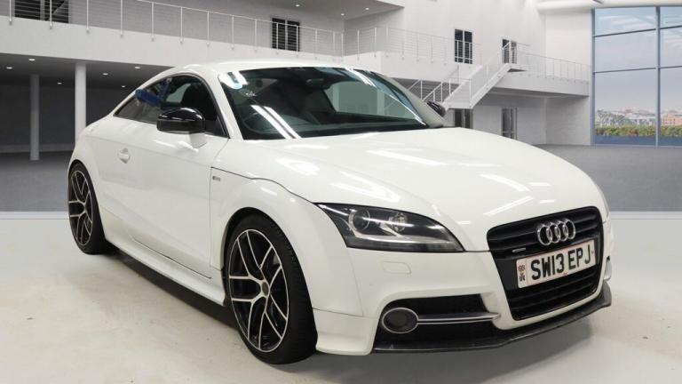 This Lovely 2013 13-Reg Audi TT 2.0 TDI Quattro S-Line ""Black Edition"" must be seen and driven!!! presented in unmarked Metallic Glacier White with S-Line black half leather sports trim, it has covered just 78,000 miles extras include Bluetooth phone prep, Bose Surround Sound Stereo, Audi Symphony radio, auto lights and wipers, Xenon headlamps with daytime running lights, Heated front seats, Sports suspension, USB/Media interface, flat bottom S-line steering wheel, Interior light package, Black styling package, Aluminium Laser inlay, Factory Short-shift manual gearbox, 19"" Gloss Black/silver alloy wheels and full S-Line styling, one of the nicest best value examples on the market today!!