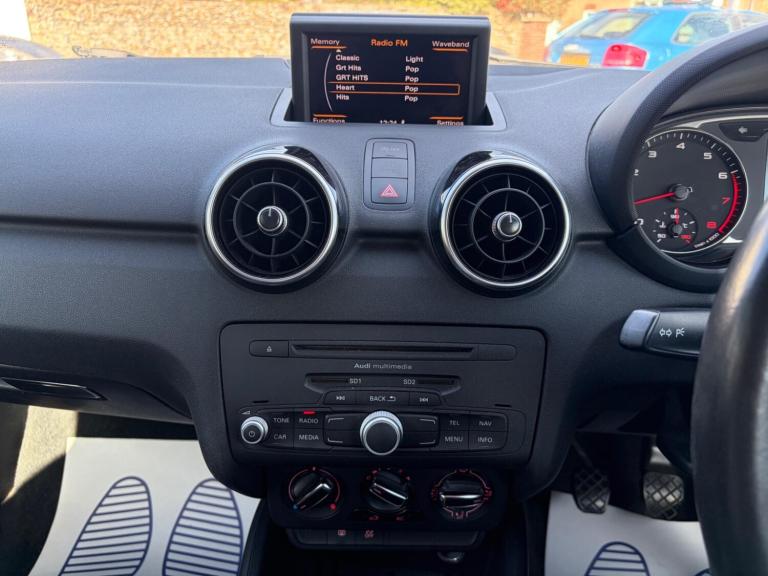 This Audi A1 TFSI Sport from 2013 boasts a clean vehicle history and has been owned by only two previous keepers, offering peace of mind for its next owner. This stylish Sport trim model features a responsive 1.4 litre petrol engine, capable of accelerating from 0 to 62 miles per hour in just 8.9 seconds. Enhancing its appeal are desirable features such as privacy glass for added discretion, a striking Brilliant Black roof contrast line, and convenient mobile telephone preparation with Bluetooth connectivity. Further enhancing the driving experience are the electronic climate control system, ensuring a comfortable cabin temperature in all conditions, and the advanced key with keyless entry, allowing for effortless access and starting. These elements combine to make this Audi A1 TFSI Sport a compelling choice, offering a blend of performance, comfort, and sophisticated features that set it apart from other vehicles in its class. Cracking little Audi Runs and drives perfectly Nice and clean inside and out Long mot next due 23/01/27 Freshly serviced Ideal 1st car or economical runner 2 keys Sold with warranty Please call us today to arrange a viewing and test drive! Features Include: , audi sound system, mobile telephone preparation - high with audi connect, mobile telephone preparation - low with bluetooth, tyre pressure loss indicator, advanced key, audi hill hold assist, xenon light package, headlights - high-beam assist, 16in alloy wheels - 7-arm dynamic design, black styling package, privacy glass, roof contrast line - brilliant black, air vent sleeves - high gloss colour contrast, audi exclusive extended leather, electronic climate control, led interior light pack, milano leather - black-black, rear floor mats, technology package, dynamic suspension, satellite navigation system - sd card based, 16in alloy wheels - 10-spoke design, 6.5in display screen, abs - anti-lock braking system, asr - anti slip regulation, aux-in socket, air conditioning, air vent sleeves - high gloss black, airbags - driver, airbags - front passenger, airbags - front side system, airbags - head system, alarm - thatcham category 1, aluminium trim for control switches, anti theft locking wheel bolts, concert radio - mp3-cd player, door mirrors - body coloured with integrated indicators, door mirrors - electrically adjustable and heated, drivers information system - dis, ebd - electronic brakeforce distribution, edl - electronic differential lock, esp - electronic