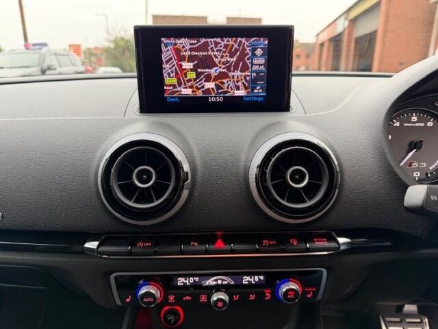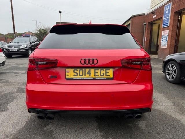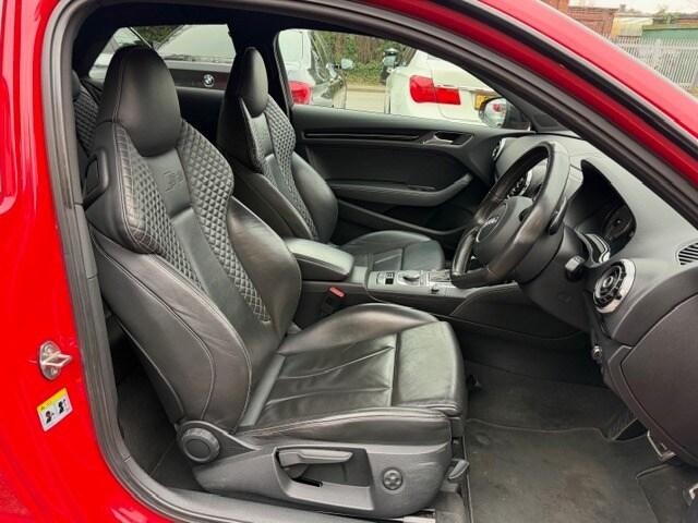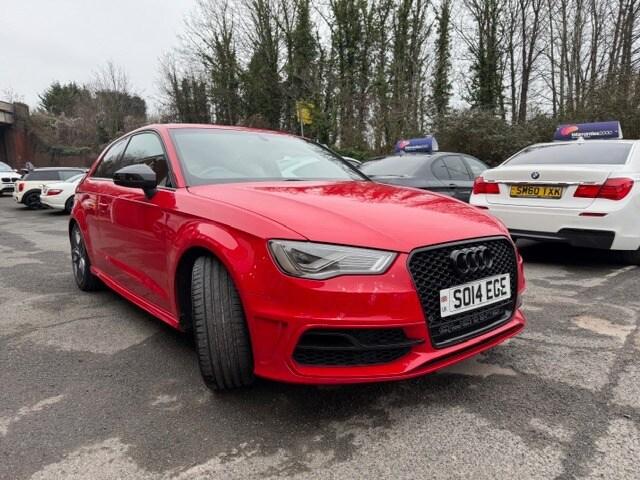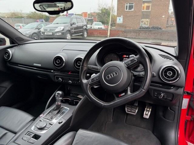 This totally stunning 2014 14-Reg Audi S3 2.0 TFSI 300 Quattro S-Tronic Auto has to be seen and driven!!!! with standard 300bhp and presented in stunning Brilliant Red with full special order super sport fine Nappa black leather S-Line trim, it has covered just 77,000 miles. Had just 3 previous owners and is supplied with Full service History(6 services) and a fantastic specification!!! extras include factory Super Sport Seats, satellite navigation and Bluetooth phone prep, Heated Seats, Technology Package with Mobile telephone preparation - High with Audi Connect, heated seats, auto lights and wipers, Xenon headlamps, USB/Media interface, front and rear parking sensors with selective display, Electric folding door mirrors, electronic lumbar supports, Keyless Entry and Go, cruise control, digital climate control, 182 Multi Spoke alloy wheels, Red Brake Callipers, privacy glass, LED Daytime running lights, Piano black interior inlays with matt brushed inserts and full S3 Styling with rear spoiler, without doubt one of the fastest most useable cars on the market to day with 300 bhp,4 wheel drive and being petrol is still fully ULEZ Compliant!!!
