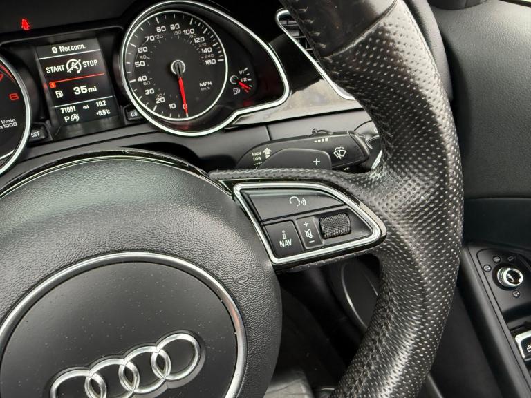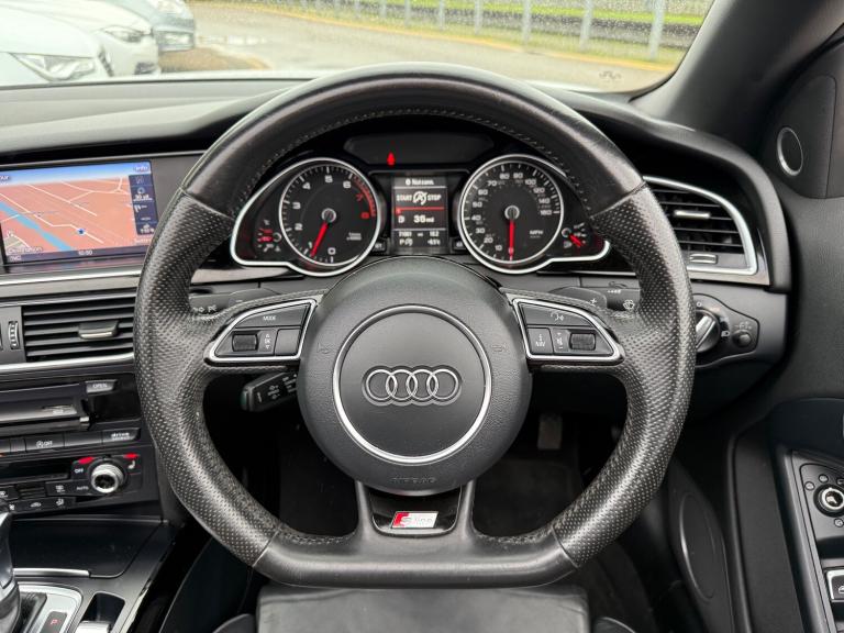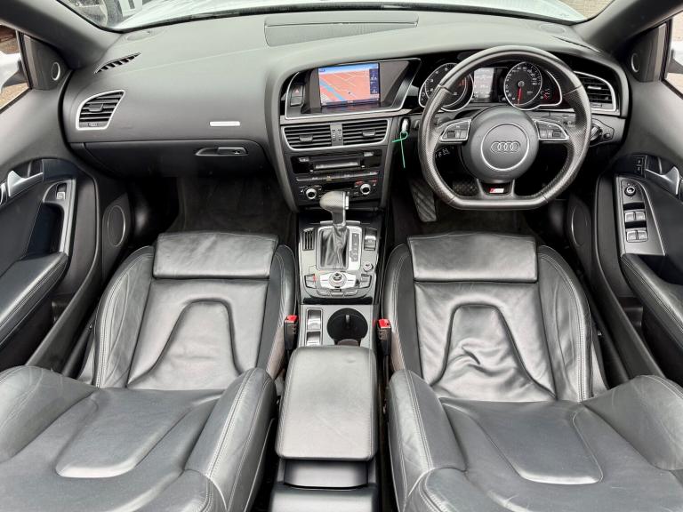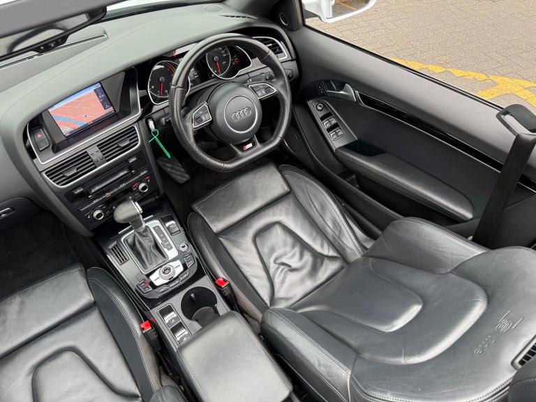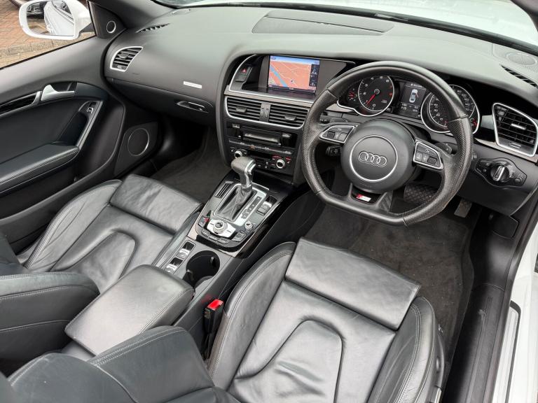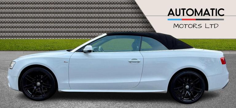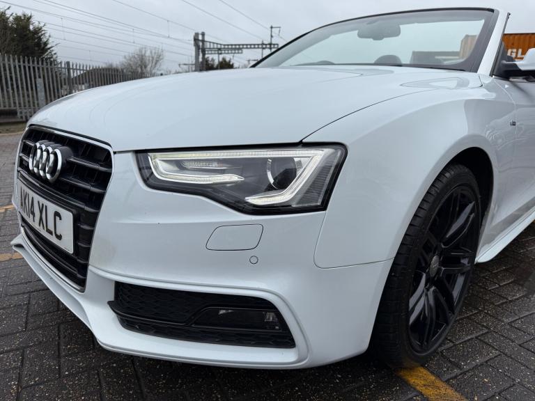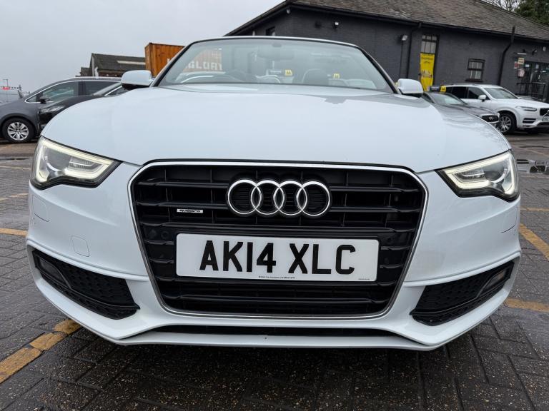 2 KEYS, ULEZ FREE, FRESH SERVICE, MOT 06/05/2025, NAVIGATION, BLUETOOTH, PARKING SENSORS, LEATHER SEATS, 2 FORMER KEEPERS This sleek 2014 Audi A5 Cabriolet boasts just 71100 miles on the clock and is the perfect choice for a stylish, open-top drive. Powered by a 2.0 TFSI S line Special Edition Convertible 2dr Petrol S Tronic quattro Euro 6 (s/s) engine, this car is not only powerful with 225 ps, but also fuel-efficient. With its MOT expiring on 06/05/2026 and ULEZ compliance, it offers peace of mind for city driving. This 2-door convertible has 4 seats, making it ideal for both solo trips and small group outings. Its features include 12V Power Socket, AMI - Audi Music Interface, AUX-IN Socket, Bang and Olufsen Sound System, and Concert Radio, ensuring a comfortable and enjoyable ride every time. Don't miss out on the chance to own this exquisite Audi A5 Cabriolet. Features Include: , 12v power socket - centre console, ami - audi music interface, aux-in socket, bang and olufsen sound system, concert radio, dab digital radio, display screen colour 7in high resolution, display screen colour tft 7in high resolution, mmi navigation plus, mobile telephone preparation - bluetooth interface, speakers x10, 19in alloy wheels - 7-double-spoke design, anti theft locking wheel bolts, black hood, door mirrors - electrically adjustable and heated, electric windows - front and rear, exterior aluminium package, fully automatic acoustic hood with led passenger reading lights, radiator grille - high gloss black, space saver spare wheel, styling package - s line exterior, wind deflector, abs - anti-lock braking system, airbags - driver, airbags - front passenger, airbags - front side, alarm - thatcham category 1, esp - electronic stability programme, electromechanical parking brake, first aid kit, isofix child seat mounting for front passenger, isofix child seat preparation for rear seats with top tether, intelligent key, warning triangle, audi parking system advanced, audi parking system plus - front, audi parking system plus - rear, colour drivers information system - dis, cruise control, electromechanical power steering, rest recommendation system, sport suspension, tyre pressure monitoring system, auto opening boot lid, auto-dimming rear-view mirror, automatic wipers with rain sensor, car jack, climate control - electronic 3-zone, cup holders - centre console, door sill trims - s line, front centre armrest, front and rear floor mats, gear knob - perforated leather,