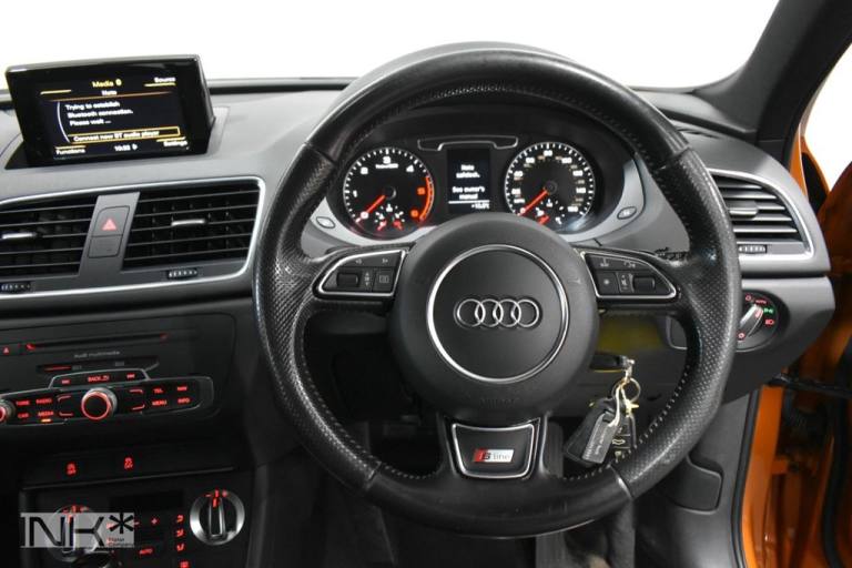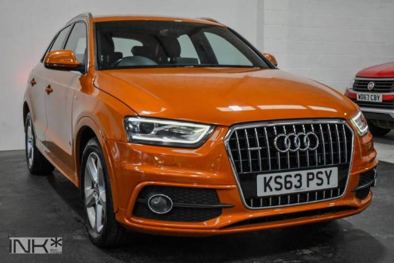Low Rate Finance & UK Delivery Available. This 2014 Audi Q3 TDI S line boasts a clear vehicle history, offering you peace of mind. This stylish SUV features a powerful 2.0 litre diesel engine paired with four wheel drive for confident handling in various conditions. Inside, youll find comfortable and supportive perforated Alcantara and leather S line sports seats in black, complemented by 18 inch alloy wheels in a 5 arm off road design. For added convenience, this Q3 includes mobile telephone preparation with Audi Connect, allowing for seamless Bluetooth connectivity, and a Comfort Package that incorporates front parking sensors. Experience an engaging drive with the Q3s impressive 0 to 62 mph acceleration in just 8.2 seconds, a performance that sets it apart from many others in its class. Furthermore, its position in a low insurance group makes it an economical choice for many drivers. Cruise control is also fitted, enhancing comfort on longer journeys. This Audi Q3 TDI S line combines practicality, performance, and premium features for a refined driving experience..12V Power Socket - Rear Centre Console, 18in Alloy Wheels - 5-Double-Spoke Design, 6.5in Display Screen, ABS - Anti-Lock Braking System, AMI - Audi Music Interface, ASR - Anti Slip Regulation, Airbags - Driver, Airbags - Front Passenger, Airbags - Front Side, Airbags - Head System, Alarm - Thatcham Category 1, Anti Theft Locking Wheel Bolts, Automatic Wipers with Rain Sensor, Brake Lights - LED, Bumpers - Front and Rear - S Line Design, Car Jack, Cloth Headlining in Black, Concert Radio - MP3/CD Player, DAB Digital Radio, Diffuser Insert and Centre Front Spoiler Lip Painted in Platinum Grey, Door Mirrors - Body Coloured with Integrated LED Indicators, Door Mirrors - Electrically Adjustable and Heated, Door Sill Trims with S Line Logo, Drivers Information System - DIS, Dual-Zone Electronic Climate Control, Dynamic Suspension, EBD - Electronic Brakeforce Distribution, EDL - Electronic Differential Lock, ESP - Electronic Stability Programme, Efficiency Program in the Drivers Information System - DIS, Electric Windows - Front and Rear, Electrically Adjustable 4-Way Lumbar Support, Electromechanical Parking Brake, Electromechanical Power Steering, Exhaust Tailpipe - Chrome Plated, First Aid Kit, Fog Lights - Chrome Surrounds, Folding Storage Compartment in Front Centre Armrest, Front Centre Armrest - Adjustable, Front Fog Lights, Front Passenger Airbag Deactivation Switch, Front Sports Seats, Front and Rear Floor Mats, Full Paint Finish, Gear Knob - Perforated Leather, Glovebox - Ventilated, Headlights - Automatic Activation, Headlights - Automatic Adjustment, Headlights - Automatic Dynamic Range Control, Headlights - Bi-Xenon Plus, Headlights - Coming-Leaving Home Function, Headlights Washers, Heated Windscreen Washer Jets, ISOFIX Child Seat Mounting for Front Passenger, ISOFIX Child Seat Preparation for Rear Seats with Top Tether, Inlays - Matt Brushed Aluminium, LED Daytime Running Lights, LED Rear Indicators, LED Rear Lights, Mobile Telephone Preparation - Bluetooth Interface, Preparation for SD Card-Based Navigation System, Radiator Grille - with Vertical Chrome Bars, Rear Parking Sensors, Rear air vents in rear centre console, Remote Central Locking with 2 Fold Away Keys, Reversible Luggage Compartment Floor, Roof Rails - Aluminium, S Line Badges on Front Wings, S Line Body Styling, SDHC Card Reader x2, Seat Belt Reminder, Seats - Drivers Manual Height Adjustment, Seats - Front Sports - S Line Embossed, Seats - Sports, Smoking Package, Space Saver Spare W