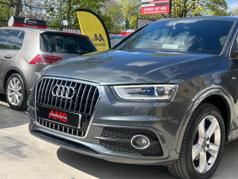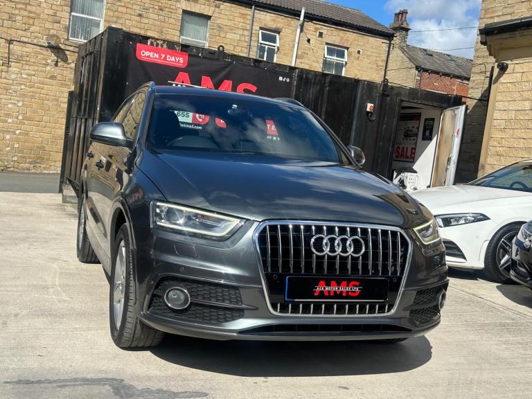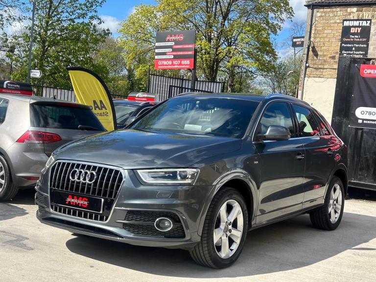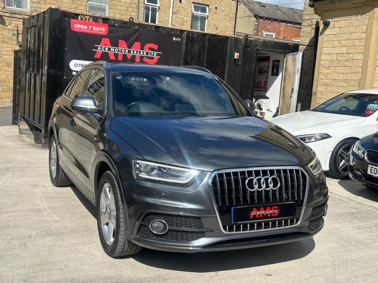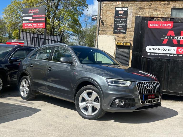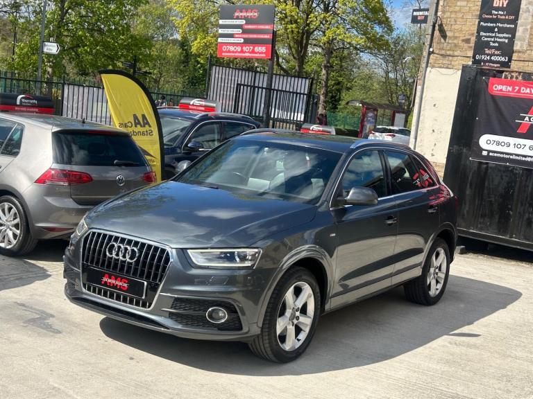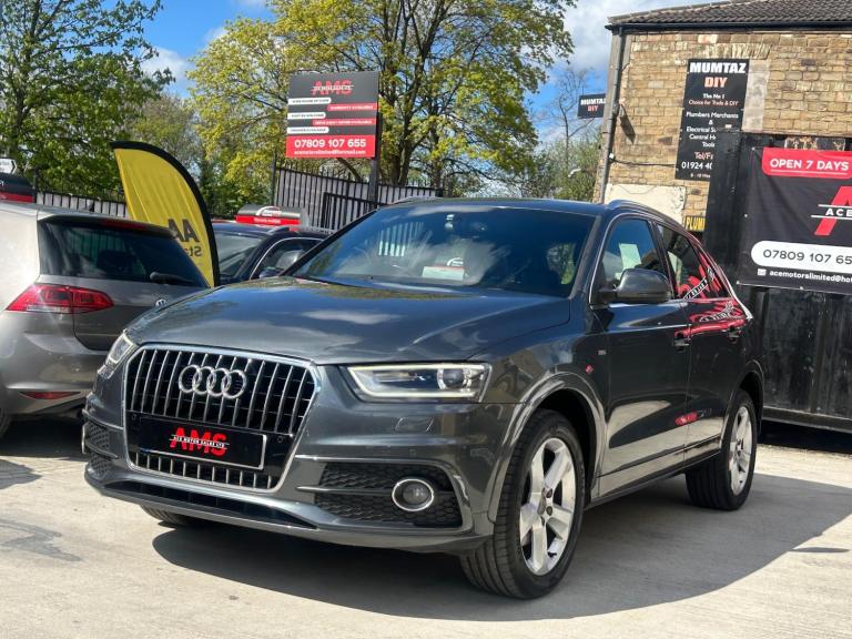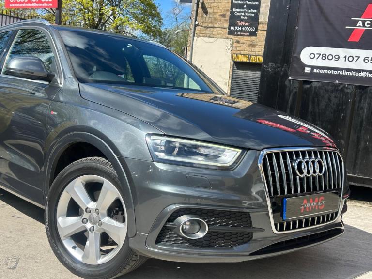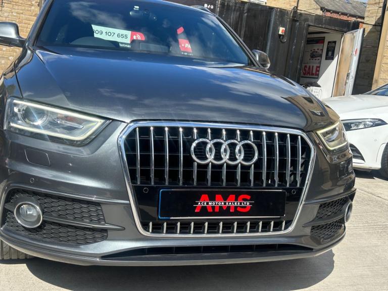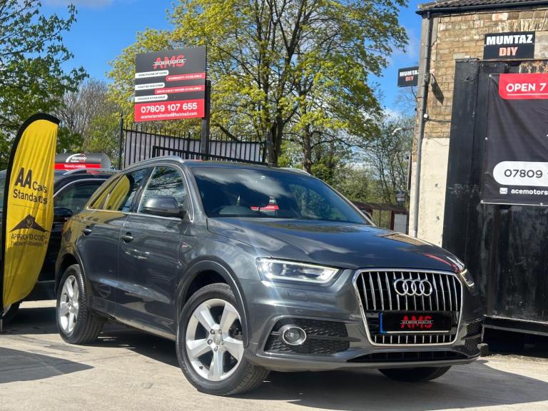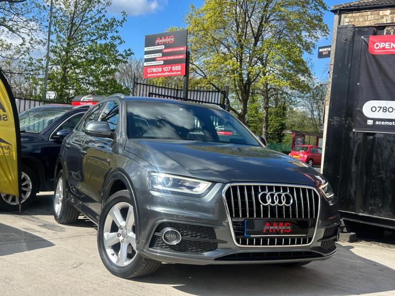 2014(63) Audi Q3 2.0 TDI S Line Quattro 133k Miles Long MOT! Service History! Clean Example! Bi-Xenon Headlights!2014 Audi Q3 S Line Quattro now available here at Ace Motor sales. This stunning Audi Q3 is finished in a lovely metallic grey accompanied by the 18 inch alloy wheels. Fantastic drive on this car with plenty of power, comfort and performance. Excellent specification. Very clean example! Spec includes: Half black leather seats, 18 inch s line alloy wheels, 6.5 inch display screen, Cruise control, Front & Rear parking sensors, LED taillights, Dual zone climate control, Dynamic suspension, Electronic parking brake, Bi xenon headlights. Plus many more extras! Low Cost Nationwide Delivery! We Take Any Car In Part Exchange! Reserve This Car For Just £99! Visit our website at ACEMOTORSALES.UK to view our latest stock! Contact The Sales Office To Make Any Further Enquiries Or To Book A Viewing/Test Drive. We are open 7 days a week. To book a viewing/test drive please call 07809107655.