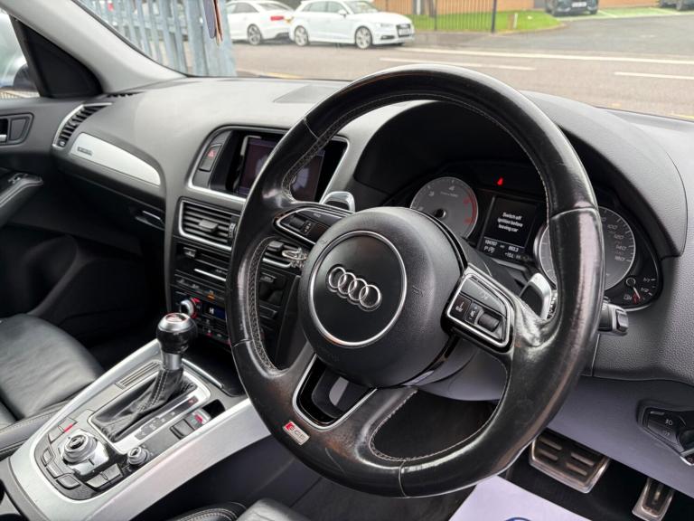 IMPRESSIVE CAR WITH THE RIGHT BLEND OF POWER AND PRESENCE WITH THE BEST COLOUR COMBINATION. THE CAR COMES WITH 2 KEYS, RECENTLY SERVICED, 8 SERVICES IN TOTAL, GEARBOX OIL CHANGE @ 84K, MOT UNTIL DECEMBER 2026, DETACHABLE TOW BAR, FINE NAPPA LEATHER SEATS - SPORTS BLACK/BLACK, ELECTRIC FRONT SEATS, SAT NAV, BI XENONS, AUTO LIGHT SENSORS, AUTO WIPERS, DELUXE 3 ZONE CLIMATE CONTROL, AUDI BLUETOOTH PHONE CONNECTIVITY, AUDI AMI, AUDI PARK PLUS - FRONT AND REAR PARKING SENSORS, 12V POWER SOCKET, SUN PROTECTION GLAZING, 6.5in DISPLAY SCREEN, AUX IN, 21in - 5 TWIN SPOKE STAR TITANIUM LOOK WITH HIGH GLOSS FINISH ALLOYS WITH GOOD TYRES ALL ROUND, HPI CHECKED, FINANCE ARRANGED, WARRANTY INCLUDED.The SQ5 stands out with its impressive acceleration, reaching 0-62mph in just 5.1 seconds, demonstrating its dynamic capabilities. This performance, combined with its large boot space, makes it a versatile choice that surpasses many similar vehicles. Furthermore, its placement in a low insurance group adds to its appeal, offering a more economical ownership experience.