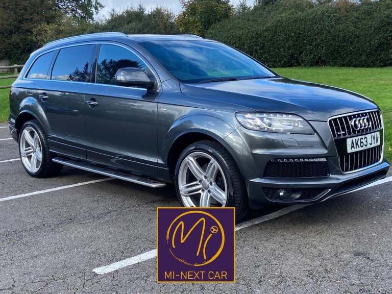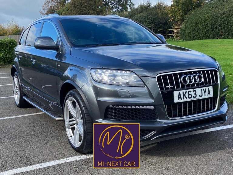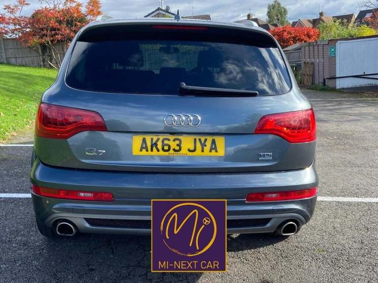 2014 Audi Q7 3.0 TDI V6 S line Plus Low Mileage, 7-Seater Luxury SUVExperience comfort, power, and practicality in this 2014 Audi Q7 S line Plus, boasting exceptionally low mileage just 84,000 miles and only two previous owners.Under the bonnet lies Audis renowned 3.0-litre V6 TDI engine, paired with quattro all-wheel drive for assured performance in all conditions. It offers the perfect balance of power, efficiency, and control.Step inside to discover a cabin that blends premium comfort with everyday versatility. With seven seats and the S line Plus specification, every journey feels first-class.Key features include:Bi-Xenon Plus headlights for superb visibilityHeated front seats for year-round comfortDual-zone electronic climate control for an ideal cabin environmentAudi Parking System Advanced with rear-view camera and front sensors for effortless manoeuvringAlloy wheels professionally refurbished by Diamond Alloys of Derby, enhancing both appearance and longevityDesigned for adventure, this Q7 offers an impressive 3,200 kg towing capacity, ideal for caravans, boats, or trailers. It accelerates from 062 mph in just 7.8 seconds, yet remains efficient and sits in a low insurance group, keeping running costs down.Meticulously maintained and presented in excellent condition, this Audi Q7 is a versatile, luxurious SUV that combines refined driving, practicality, and exceptional value.