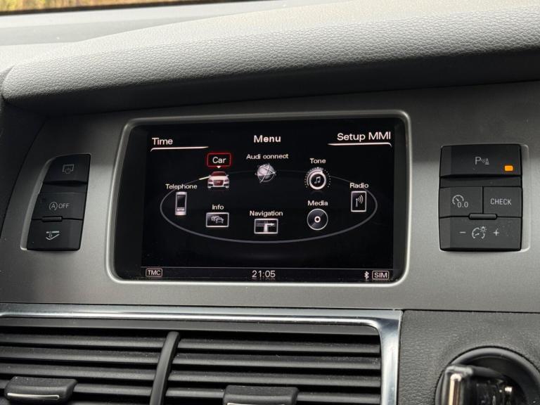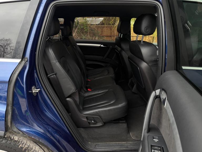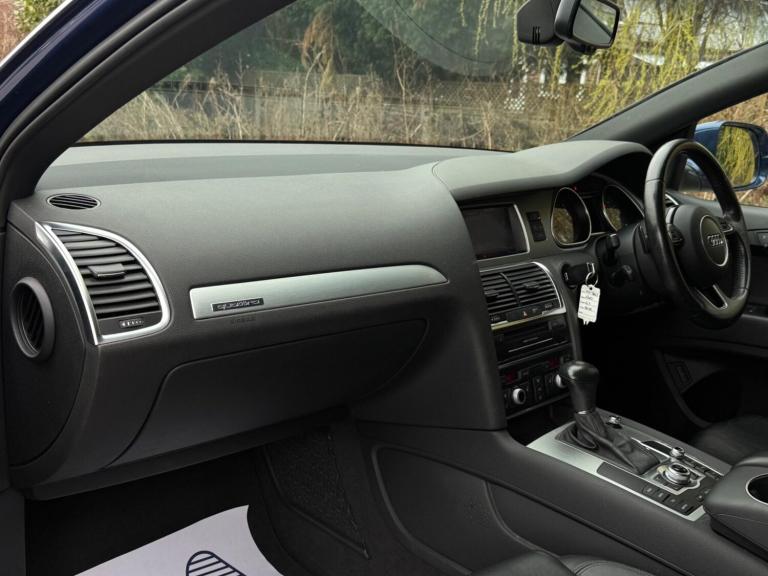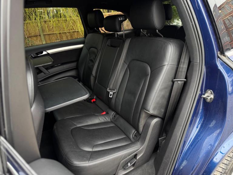 1 OWNER FROM NEWPART SERVICE HISTORY - WATER PUMP DONE @ 92,722LOGBOOKK2This Audi Q7 TDI V6 S line Plus from 2014 boasts a single owner from new, offering a unique provenance. This impressive seven seater features a powerful 3.0 litre diesel engine paired with Audi's renowned four wheel drive system, ensuring confident performance in all conditions. The S line Plus trim level enhances its already sophisticated appeal. Notable features include automatic headlights with a light sensor, heated front seats for added comfort, and the Audi Parking System Rear with acoustic indicators to assist with manoeuvring. Inside, you'll find dual zone electronic climate control to keep everyone comfortable, and mobile telephone preparation with Audi Connect, including Bluetooth connectivity for seamless communication.With an acceleration of 0 to 62 miles per hour in just 7.8 seconds, this Q7 offers brisk performance that sets it apart from many other vehicles in its class. Its low insurance group rating is another advantage, potentially making it more economical to own. Furthermore, this capable SUV has a substantial towing weight of 3200 kg, making it a practical choice for those who need to tow. This combination of performance, practicality, and desirable features makes this Audi Q7 a compelling option.