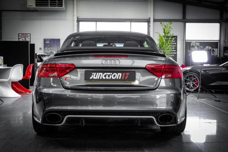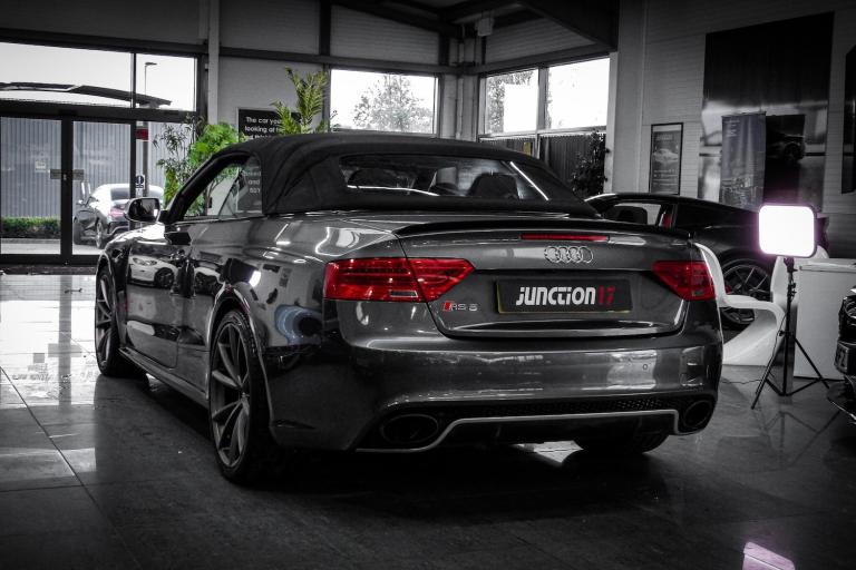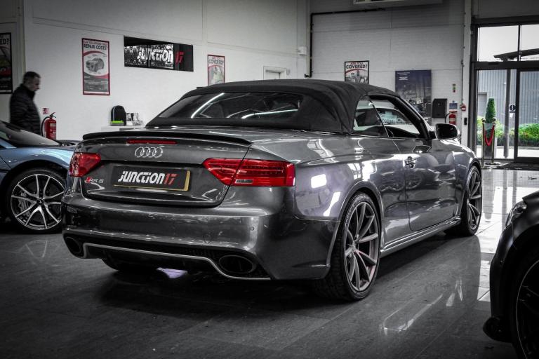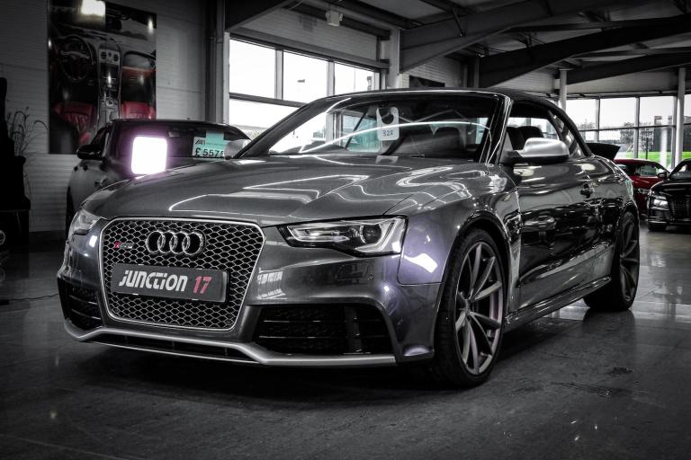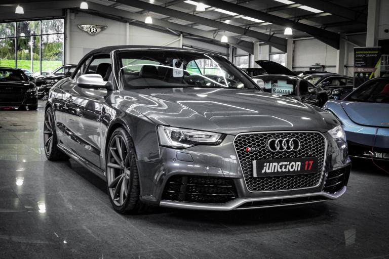 *CLICK - BUY - COLLECT* FINANCE AVAILABLE! HPI CLEAR! Junction 17 Cars now have to offer a stunning Audi RS5 4.2 FSI V8 Cabriolet S Tronic quattro Euro 5 2dr.. 6 x Services Present.. Finished in Daytona Grey Pearl and complemented by Black Leather Upholstery.. Fantastic Specification.. Sports Package.. Bang and Olufsen Sound System.. Upgraded 20'' Alloys.. Audi Parking System Advanced.. Heated Front Seats.. Carbon Interior Trim.. and much more.*ANY THIRD PARTY VEHICLE INSPECTIONS ARE WELCOME* *WE WILL BEAT ANY CAR VALUATION SITE FOR YOUR PART EXCHANGE* Junction 17 Cars (Runner Up at the Motor Trader Independent Dealer Awards 2019 nominated for Car Supermarket of the Year Award) is a unique family run business with over 7 millions worth of stock currently split over our purpose-built showroom in Yaxley, Peterborough and our new showrooms in Grantham and Rugby. Our vehicles can also be reserved with a 99 refundable holding deposit to ensure that they are professionally prepared/valeted for your viewing pleasure. Competitive HP and PCP packages are available with decision/approval available within 15 minutes. We also offer comprehensive warranties over a variety of different terms as well as Williams Ceramic Coating, Flexfuel Engine Carbon Cleaning and more. **NATIONWIDE DELIVERY AVAILABLE** Payment : maximum 500 card payment balance by bank transferThe vehicle is being sold on behalf of a third party for whom we act as an agent