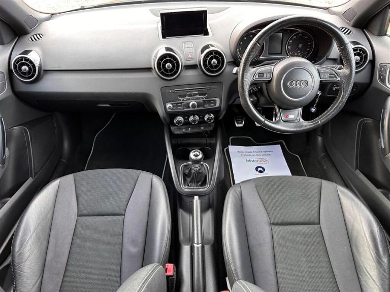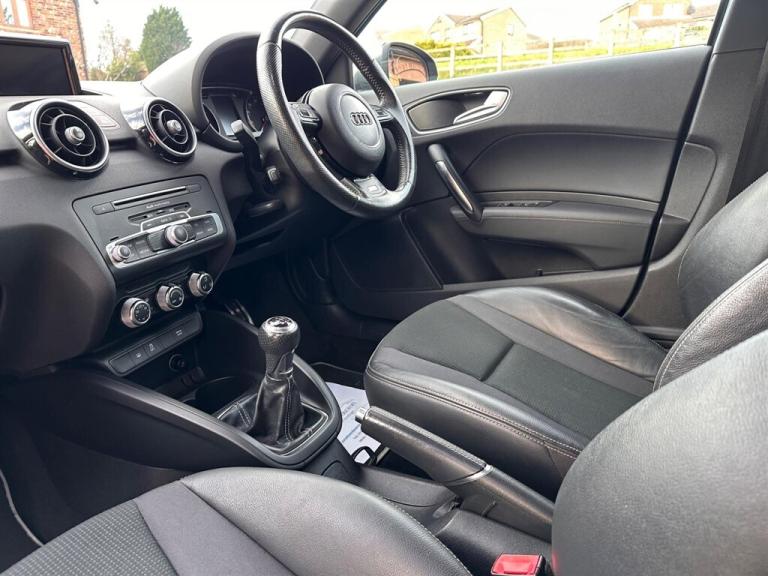 Audi A1 Sline 1.4 looks amazing in dark grey metallic with contrast silver roof. Only 66,000 miles with full service history at 18k, 24k, 31k, 48k, 63k and 66k with a fresh mot. immaculate car and meticulously looked after by its last owner. Supplied with 2 keys, full owners book pack , 12 months mot, 3 months warranty and a clear hpi certificate. Specification includes satellite navigation, leather seats, cruise control, 17"" ltd-ed alloy wheels, led head lights, rear parking assist, multifunction steering wheel, air conditioning and much more. Finance and warranty options available and part exchange welcome. This car has the perfect specification and is ready for immediate delivery. Click on our website for 30+ photos and a HD Video. We offer tailor made FINANCE packages and part exchange is welcome. Call us on 0113 2820048/[Phone number removed] or visit us at [Website URL removed] or simply click on the visit website link.. 12V Power Socket - Centre Console,17in Alloy Wheels - 10-Spoke Design High Gloss,ABS - Anti-Lock Braking System,AMI - Audi Music Interface,ASR - Anti Slip Regulation,AUX-IN Socket,Adaptive Brake Lights,Air Conditioning,Air Vent Sleeves - High Gloss Black,Airbags - Driver,Airbags - Front Passenger,Airbags - Front Side System,Airbags - Head System,Alarm - Thatcham Category 1,Aluminium Trim for Control Switches,Ambient Lighting,Anti Theft Locking Wheel Bolts,Audi Drive Select,Bluetooth Audio Streaming,Cloth Headlining in Black,Concert Radio - MP3-CD Player,Cup Holders - x2 in Centre Console,DAB Digital Radio,Dashboard - Black,Display Screen - 6.5in High Gloss Black,Display Screen Monochrome - 3.5in Dashboard Binnacle,Door Handles - Aluminium Look Trim,Door Handles - Illuminated,Door Mirrors - Body Coloured with Integrated Indicators,Door Mirrors - Electrically Adjustable and Heated,Door Sill Trims - Aluminium with S Line Logo,Door or Boot Open Warning,Drivers Information System - DIS,EBD - Electronic Brakeforce Distribution,EDL - Electronic Differential Lock,ESP - Electronic Stability Programme,Efficiency Program in the Drivers Information System - DIS,Electric Windows - Front and Rear,First Aid Kit,Floor Mats,Front Fog Lights,Front Passenger Airbag Deactivation Switch,Front Reading Lights,Front Sports Seats,Gear Knob - Leather Sports with Aluminium Trim,Glovebox - Illuminated,Handbrake Grip - Black Leather,Head Restraints - Rear,Headlights - Automatic Adjustment,Headlights - Bi-Xenon Plus,Headlights - Dynamic Range Control,Headlights Washers,Heat Insulating Glass - Windscreen and Side Windows,Heated Rear Windscreen,Heated Windscreen Washer Jets,ISOFIX Child Seat Preparation for Rear Seats with Top Tether,Illuminated Footwell Lighting,Illuminated Front Door Armrests,Illuminated Vanity Mirrors,Immobiliser,LED Daytime Running Lights,LED Interior Light Package,LED Rear Lights,Luggage Compartment - LED Light,Manually Adjustable Lumbar Support in Front Seats,Mobile Telephone Preparation - Bluetooth Interface,Non-Smoking Package,Outside Temperature Display,Platinum Grey Rear Bumper Diffuser Insert,Polished Tailpipes,Pollen Filter,Power Steering,Reflected Lighting for Centre Console,Remote Central Locking with 2 Fold Away Keys,S Line Badges on Wings,S Line Body Styling,S Line Roof Spoiler,SD Card Reader x2,Satellite Navigation System - Preparation,Seat Belt Reminder for All Seats,Seats - Front Height Adjustment,Seats - Front with Embossed S Line Logo,Secondary Collision Brake Assist,Speakers x6 - Front and Rear,Split-Folding Rear Seats,Steering Wheel - 3-Spoke Leather - Multi-function - Sports,Steering Wheel - Height and Reach Adjustable,Steering Wheel - Multi-function,Suspension - S Line,Tool Kit and Car Jack,Tow Away Protection and Interior Monitoring,Traction Control,Tyre Pressure Monitoring System,Tyre Repair Kit,USB Connection,Voice Control - Telephone,Warning Triangle,Washer Fluid Level Indicator,Technology Package,Acoustic Parking System - Rear,Contrast Roof - Floret Silver - Metallic,Cruise Control,High-Gloss Black Styling Package