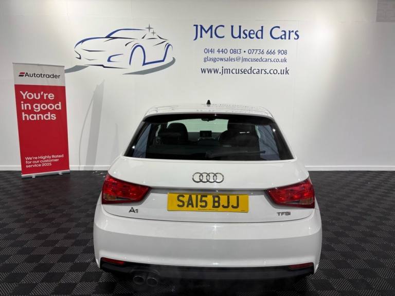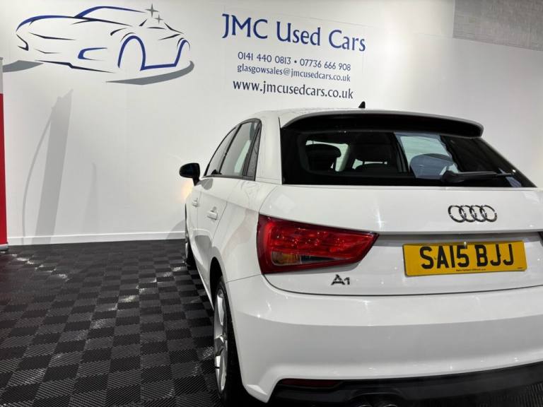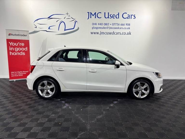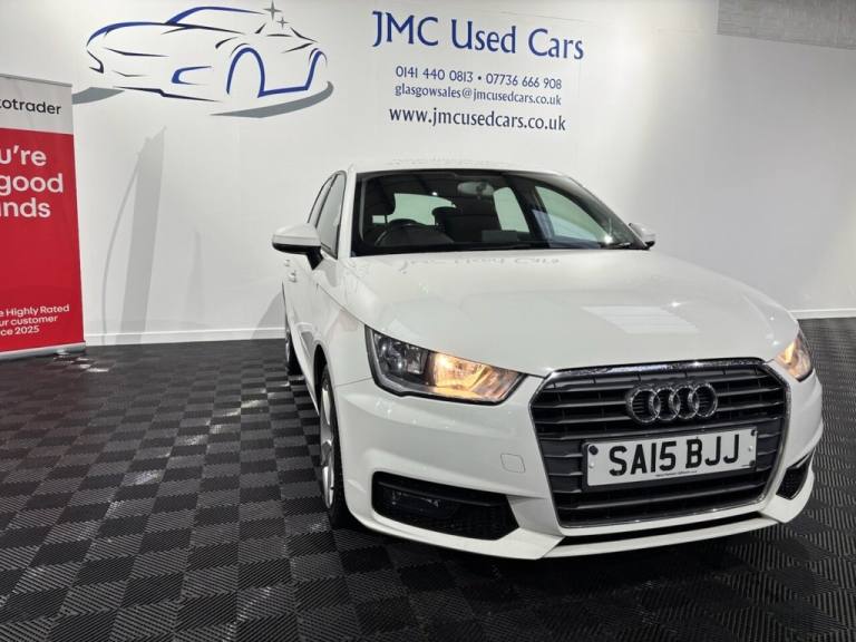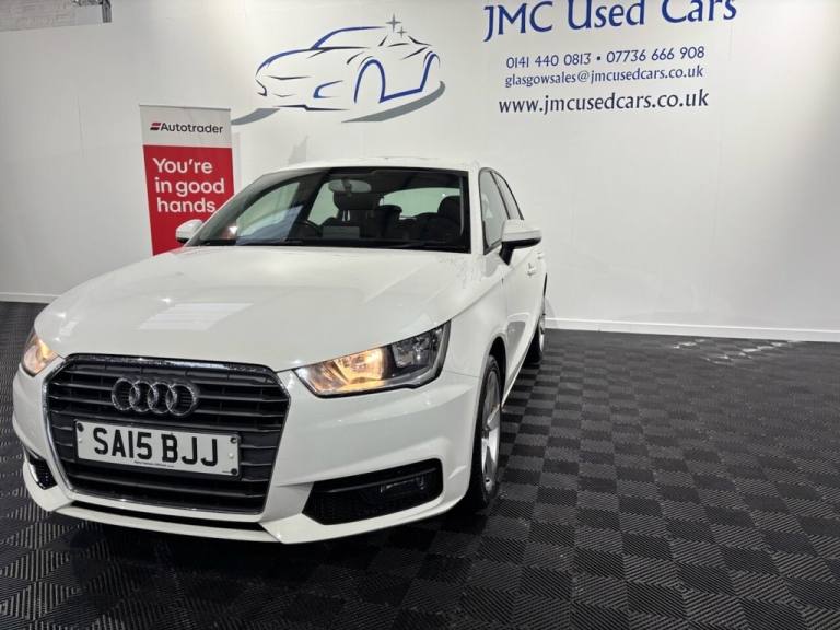 The Audi A1?1.4?TFSI Sport Sportback (5?door, manual, Euro?6) is a slick and sporty supermini that packs real performance into a compact body. Its turbocharged 1.4?litre TFSI engine delivers brisk acceleration (0?60?mph in about 8.6 seconds) while still offering impressive fuel economy — around 55 mpg combined according to used?car listings. Despite its small size, the Sportback configuration gives it very usable practicality, with five doors making rear access easier and boot space more flexible. The Sport trim adds a sporty flair with sharper suspension, stylish alloy wheels, and Audis quality interior feel, making it fun to drive without compromising comfort. Plus, being Euro?6 compliant means its relatively clean and efficient, which helps in reducing running costs. Award-Winning Family Business Premium Customer Service & Aftercare Located just off Junction 24 of the M8 in Glasgow, we offer an impressive range of quality used cars, all displayed in our indoor showroom. Each vehicle is meticulously prepared to meet our high standards, ensuring youre driving away with complete confidence. We welcome part exchanges and offer tailored finance and warranty packages to suit every budget. Need help choosing the right car? Our team is here to provide expert advice and support. Cant make it in person? No problem! We offer live video walkarounds of our cars upon request, and you can complete all finance agreements securely online. For more details or to arrange a viewing, contact Martin today. JMC USED CARS WWW.JMCUSEDCARS.CO.UK [Email address removed. Click Email button to contact us.] YEAR MOT, BLUETOOTH, DAB RADIO, £35 ROAD TAX, FINANCE AVAILABLE, Audi Sound System, Shell White, Comfort Package, 12V Power Socket - Centre Console, 16in Alloy Wheels - 5-Spoke Sport Design, ABS - Anti-Lock Braking System, AMI - Audi Music Interface, ASR - Anti Slip Regulation, AUX-IN Socket, Adaptive Brake Lights, Air Conditioning, Air Vent Sleeves - High Gloss Black, Airbags - Driver, Airbags - Front Passenger, Airbags - Front Side System, Airbags - Head System, Alarm - Thatcham Category 1, Aluminium Trim for Control Switches, Anti Theft Locking Wheel Bolts, Audi Drive Select, Bluetooth Audio Streaming, Concert Radio - MP3-CD Player, Cup Holders - x2 in Centre Console, DAB Digital Radio, Dashboard - Black, Daytime Running Lights, Display Screen - 6.5in High Gloss Black, Display Screen Monochrome - 3.5in Dashboard Binnacle, Door Handles - Aluminium Look Trim, Door Mirrors - Body Coloured with Integrated Indicators, Door Mirrors - Electrically Adjustable and Heated, Door Sill Trims with Aluminium Inlay, Door or Boot Open Warning, Drivers Information System - DIS, EBD - Electronic Brakeforce Distribution, EDL - Electronic Differential Lock, ESP - Electronic Stability Programme, Efficiency Program in the Drivers Information System - DIS, Electric Windows - Front and Rear, First Aid Kit, Floor Mats, Front Fog Lights, Front Passenger Airbag Deactivation Switch, Front Sports Seats, Gear Knob - Leather Sports with Aluminium Trim, Glovebox - Illuminated, Halogen Headlights, Handbrake Grip - Black Leather, Head Restraints - Rear, Headlining - Titanium Grey Cloth, Heat Insulating Glass - Windscreen and Side Windows, Heated Rear Windscreen, Heated Windscreen Washer Jets, ISOFIX Child Seat Preparation for Rear Seats with Top Tether, Immobiliser, Manually Adjustable Lumbar Support in Front Seats, Mobile Telephone Preparation - Bluetooth Interface, Non-Smoking Package, Outside Temperature Display, Polished Tailpipes, Pollen Filter, Power Steering, Remote Central Locking with 2 Fold Away Keys, SD Card Reader x2, Satellite Navigation System - Preparation, Seat Belt Reminder for All Seats, Seats - Front Height Adjustment, Secondary Collision Brake Assist, Speakers x6 - Front and Rear, Split-Folding Rear Seats, Sport Suspension, Steering Wheel - 3-Spoke Leather - Multi-function - Sports, Steering Wheel - Height and Reach Adjustable, Steering Wheel - Multi-function, Tool Kit and Car Jack, Tow Away Protection and Interior Monitoring, Traction Control, Tyre Pressure M