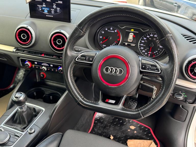 A superb example of the ever-popular Audi A3 S Line, finished in classic Glacier White and powered by the refined and efficient 1.4 TFSI engine. First registered on 30/12/2015, this well-kept, stylish hatchback has had just 2 previous owners, reflecting careful ownership throughout.The S Line Nav model offers the perfect blend of sporty styling, premium comfort and everyday usability. With its sharp exterior design, punchy performance and well-equipped interior, its an ideal choice for both commuters and weekend drivers alike. Key FeaturesS Line Styling Pack sportier bumpers, side skirts & S Line detailingSatellite Navigation (MMI Navigation Plus)1.4 TFSI Engine (CZCA) smooth, economical & reliableS Line Sports Seats with half-leather/cloth upholsterySport SuspensionDual-Zone Climate ControlAudi Drive Select ModesLED Daytime Running LightsMultifunction Leather Steering WheelBluetooth Phone & Media ConnectivityDAB Digital Radio17'' S Line Alloy WheelsElectric Windows & Mirrors