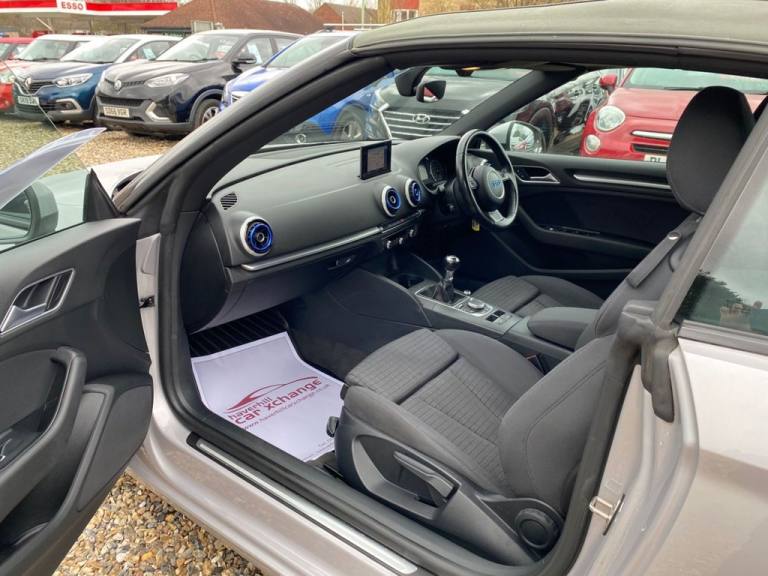 CONVERTIBLE+ONLY £35 A YEAR ROAD TAX+£2,665.00 OF FEATURES WHICH INCLUDE A 5.8 INCH DISPLAY SCREEN+SATELLITE NAVIGATION SYSTEM+AUDI MUSIC INTERFACE+DAB DIGITAL RADIO+BLUETOOTH INTERFACE+DUAL ZONE CLIMATE CONTROL AIR-CONDITIONING+AUTOMATIC HEADLIGHT ACTIVATION+RAIN-SENSING WINDSCREEN WIPERS+LUXURIOUS HEATED SEATS WITH HEAD LEVEL HEATING+PARKING ASSISTANCE WITH PARKING CAMERA+METALLIC LOTUS GREY PAINT+17 INCH ALLOY WHEELS. At Haverhill Car Xchange we would like to offer you our CONVERTIBLE Audi A3 Sport Cabriolet which has been finished in a metallic Lotus Grey paint with luxurious HEATED Black-Silver Rallye Sports Seats. Excellent Specification Includes a 5.8 Inch Colour Screen which features a Satellite Navigation System, Audi Music Interface, DAB Digital Radio, Bluetooth Interface, Voice Control Telephone, 12 Volt Power Socket, Dual Zone Climate Control Air-Conditioning, Gear Change Indicator, Front and Rear Electric Windows, Body Coloured Bumpers/Door Handles and Door Mirrors with Integrated LED Indicators, Automatic Headlight Activation, Daytime Running Lights, Halogen Headlights, Coming-Leaving Home Headlights, Front Fog Lights, High Mounted Third Break Light, Rain-Sensing Windscreen Wipers, Sports Seats, Parking Assistance with Parking Camera, Multifunction 3-Spoke Sports Leather Steering Wheel, Heated Seats with Head Level heating, Comfort Package, 17 Inch Alloy Wheels, Power Steering, ABS Breaking System, Airbags, Alarm, Immobiliser, Remote Central Locking and ISOFIX Anchorage Points for Child Seats. *** WE ARE OPEN 7 DAYS A WEEK *** ** UPTO 100 CARS IN STOCK **.Seats - Heated Front, Lotus Grey, Reversing Camera, Automatic Wipers with Rain Sensor, Headlights - Automatic Activation, Rallye Cloth - Sports Seats - Black-Silver, Satellite Navigation System - SD Card Based, Reversing Camera, Seats - Heated Front, Head-Level Heating - Front, Lotus Grey, Comfort Package, 12V Power Socket - Centre Console, 17in Alloy Wheels - 5-Arm Design, 2 x SDXC Card Readers, 50 Station Memory with Dynamic Station List, ABS - Anti-Lock Braking System, AMI - Audi Music Interface, ASR - Anti Slip Regulation, Acoustic Hood - Fully Automatic, Active Bonnet, Active Roll-Over Protection System, Adaptive Brake Lights, Air Vents - Aluminium Look, Airbags - Driver, Airbags - Drivers Knee, Airbags - Front Passenger, Airbags - Front Side, Alarm - Thatcham Category 1, Aluminium Interior Elements, Anti Theft Locking Wheel Bolts, Audi Drive Select, Automatic Wipers with Rain Sensor, Black Hood, Bluetooth Audio Streaming, Body Coloured Door Mirrors, Chrome-Plated Exhaust Tailpipe Trim, Colour Drivers Information System - DIS, Cup Holders - Rear x2, Cup Holders - x2 in Centre Console, DAB Digital Radio, Daytime Running Lights, Display Screen Colour - 5.8in, Door Mirrors - Built-in LED Side Indicators, Door Mirrors - Electrically Adjustable and Heated, Door Sill Trims, Door or Boot Open Warning, Dual-Zone Electronic Climate Control, EBD - Electronic Brakeforce Distribution, EDL - Electronic Differential Lock, ESC - Electronic Stabilisation Control, Electric Windows - Front and Rear, Electromechanical Parking Brake, Electromechanical Power Steering, Exhaust Tailpipe - Double on the Left, First Aid Kit, Floor Mats - Front and Rear in Velour, Fog Lights - Chrome Surrounds, Front Centre Armrest - Adjustable, Front Fog Lights, Front Passenger Airbag Deactivation Switch, Front Sports Seats, Gear Change Indicator, Glovebox - Illuminated, Halogen Headlights, Head Restraints - Front Adjustable, Headlights - Automatic Activation, Headlights - Coming-Leaving Home Function, Headlights - Electric Range Control, Heated Windscreen Washer Jets, High Mounted Third Brake Light, Hood Lining - Black, Hydraulic Brake Assist, ISOFIX Child Seat Mounting for Front Passenger, ISOFIX Child Seat Preparation for Rear Seats with Top Tether, Immobiliser, Inlays - Aluminium Mistral Silver, Integrated Aerial Concealed Under Side Panel Trim, Interior Lighting, LED Number Plate Light, Light and Rain Sensor Package, Luggage Compartment - Lashing Points x4, Luggage Compartment - Lighting