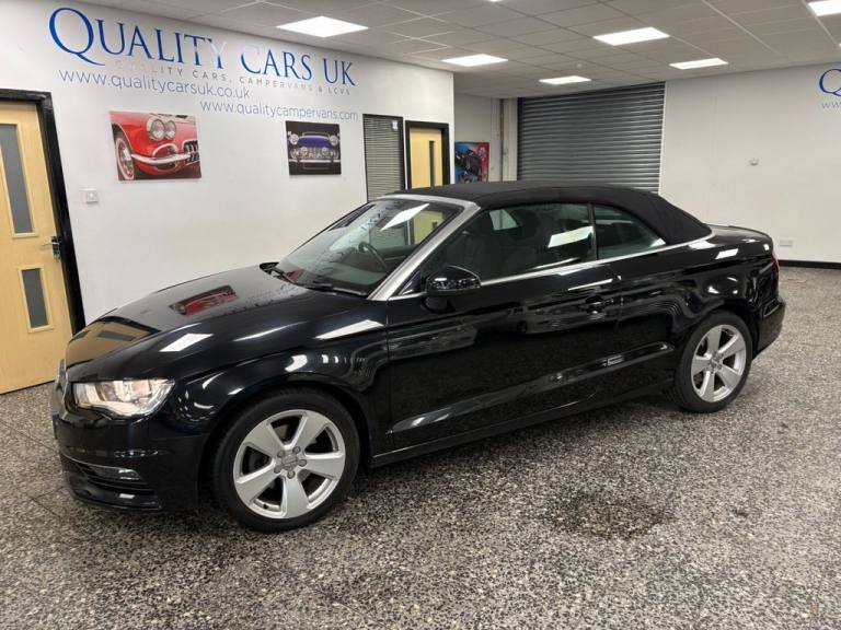 This Stunning Audi A3 1.4 TFSi Sport Convertible Manual is finished in the Deepest Black with black sport Cloth trim and has just one lady owner from Brand New. It has a Great service history too with services carried out at the supplying Audi dealership Crewe Audi at 6,994 miles 23,003 miles and 34,940 miles then local service centre services at 47,061 miles and 50,457 Miles on 27th October 2025. Plus we will service it again and carry out a new MOT as part of our presales preparation process so that we know its leaving ourselves in the best possible condition. This A3 convertible is an absolute credit to its one lady owner and a pleasure to be able to offer for sale .To arrange a test drive ,viewing or place an order call or WhatsApp Darren direct on 07729 200911. PLEASE CALL FOR VIEWING APPOINTMENTS! We are a father and daughter team. Having been in business for over 30 years, we are truly customer centered. We pride ourselves on customer retention, which means most of our customers return to us for either their next car, childs first car and even grandchilds first car. Customer satisfaction is also very important to us. We strive to go the extra mile and aim to make everyone who walks through the door feel like family..12V Power Socket - Centre Console, 17in Alloy Wheels - 5-Arm Design, 2 x SDXC Card Readers, 50 Station Memory with Dynamic Station List, ABS - Anti-Lock Braking System, Acoustic Hood - Fully Automatic, Active Bonnet, Active Roll-Over Protection System, Adaptive Brake Lights, Air Vents - Aluminium Look, Airbags - Driver, Airbags - Drivers Knee, Airbags - Front Passenger, Airbags - Front Side, Alarm - Thatcham Category 1, Aluminium Interior Elements, AMI - Audi Music Interface, Anti Theft Locking Wheel Bolts, ASR - Anti Slip Regulation, Audi Drive Select, Automatic Wipers with Rain Sensor, Black Hood, Bluetooth Audio Streaming, Body Coloured Door Mirrors, Chrome-Plated Exhaust Tailpipe Trim, Colour Drivers Information System - DIS, Cup Holders - Rear x2, Cup Holders - x2 in Centre Console, DAB Digital Radio, Daytime Running Lights, Display Screen Colour - 5.8in, Door Mirrors - Built-in LED Side Indicators, Door Mirrors - Electrically Adjustable and Heated, Door or Boot Open Warning, Door Sill Trims, Dual-Zone Electronic Climate Control, EBD - Electronic Brakeforce Distribution, EDL - Electronic Differential Lock, Electric Windows - Front and Rear, Electromechanical Parking Brake, Electromechanical Power Steering, ESC - Electronic Stabilisation Control, Exhaust Tailpipe - Double on the Left, First Aid Kit, Floor Mats - Front and Rear in Velour, Fog Lights - Chrome Surrounds, Front Centre Armrest - Adjustable, Front Fog Lights, Front Passenger Airbag Deactivation Switch, Front Sports Seats, Gear Change Indicator, Glovebox - Illuminated, Halogen Headlights, Head Restraints - Front Adjustable, Headlights - Automatic Activation, Headlights - Coming-Leaving Home Function, Headlights - Electric Range Control, Heated Windscreen Washer Jets, High Mounted Third Brake Light, Hood Lining - Black, Hydraulic Brake Assist, Immobiliser, Inlays - Aluminium Mistral Silver, Integrated Aerial Concealed Under Side Panel Trim, Interior Lighting, ISOFIX Child Seat Mounting for Front Passenger, ISOFIX Child Seat Preparation for Rear Seats with Top Tether, LED Number Plate Light, Light and Rain Sensor Package, Luggage Compartment - Lashing Points x4, Luggage Compartment - Lighting, Manual Height Adjustment for Front Seats, MMI Control Panel, MMI Radio, Mobile Telephone Preparation - Bluetooth Interface, Model and Engine Technology Badges at Rear, Outside Temperature Display, Pollen Filter, Preparation for SD Card-Based Navigation System, Remote Central Locking, Rest Recommendation S