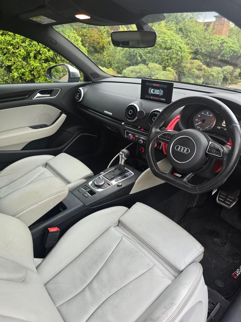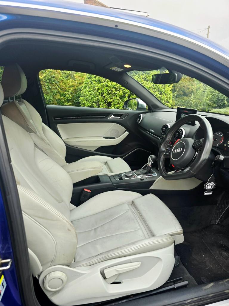 A PERFECT OPPERTUNITY to Buy this stunning GORGEOUS Audi s3 Quattro with the best colour combo . An Absolute Pride Ride Brand new tints all around included chameleon BLUE for Front Windscreen . NEW ALLOYS REFURB An Absolute Bargain FIRST COME FIRST SERVE AN 18 MONTHS WARRANTY INCLUDED WITH ASKING PRICE ( which is normaly 1k ) Any debit credit cards Accepted Finance Available Features: 18 10 spoke design titanium matt alloy wheel, Active Cruise Control, Auto Start / Stop Function, Automatic Lights / Wipers Function, Bang + Olufsen advanced sound system, Bluetooth Connectivity, Cruise control, DAB Digital radio, Dual Climate Control with Air Con, Electric Heated Mirrors, Electric Windows, Front / Rear Parking Sensors, Full White Leather Interior, Heated front seats, In Car Entertainment - CD / SD / AMI, Multi Function Steering Wheel, Pearl - Sepang blue, Pre sense .ONE YEAR FRESH MOT OIL LEAK WAS IN LAST 2 MOTS WHICH HAS BEEN DONE 800 POUNDA JUST SPENT ON THE CAR .RECIPTS ARE AVAILABLE