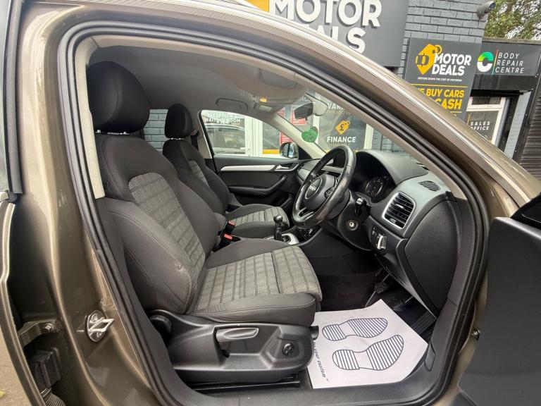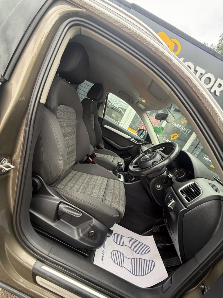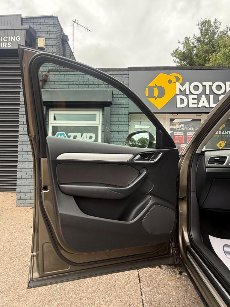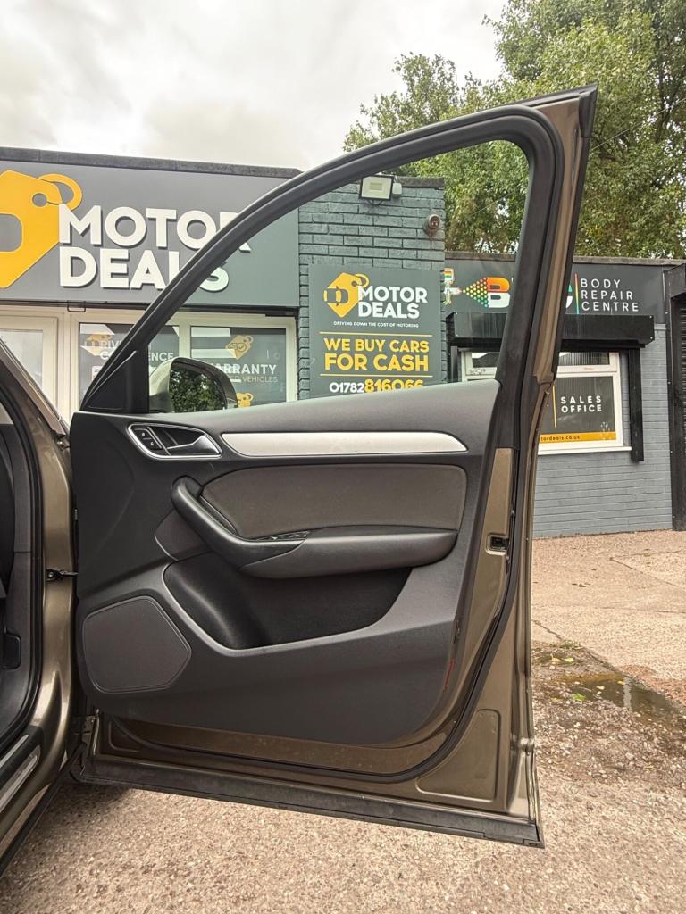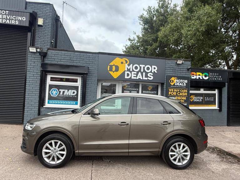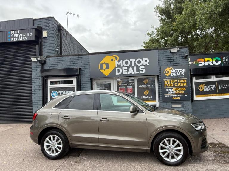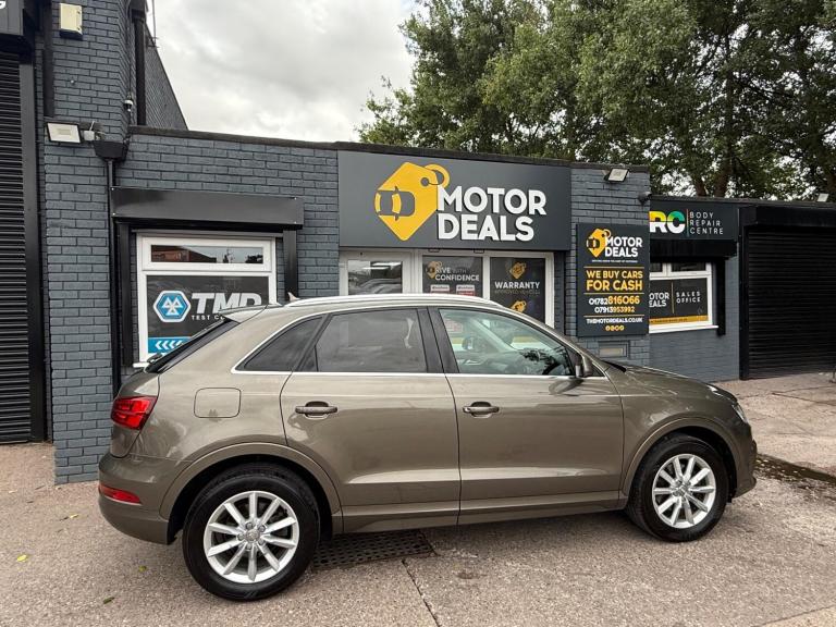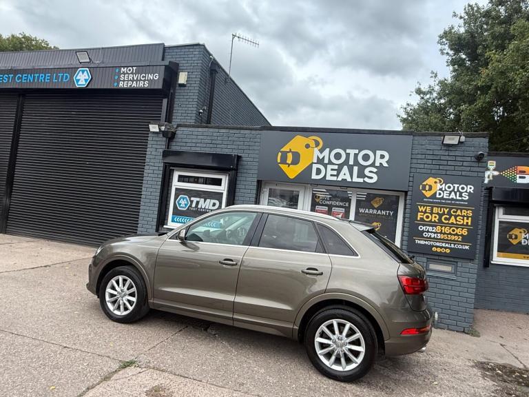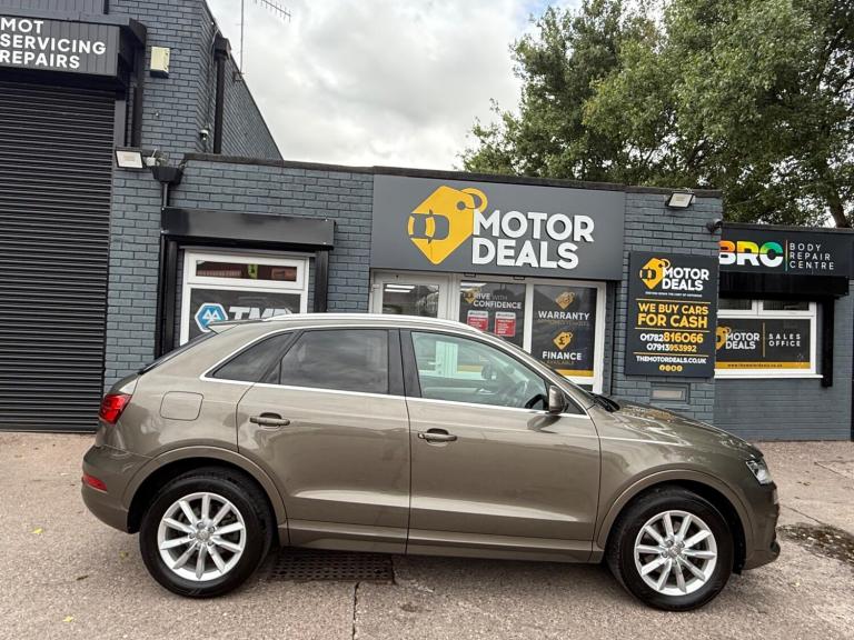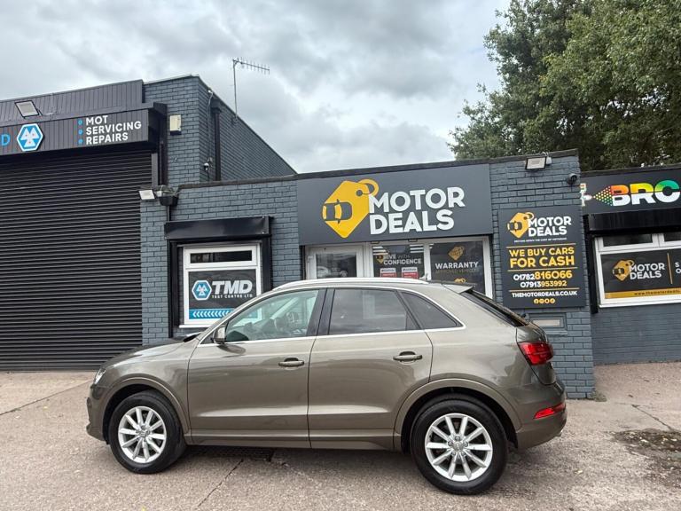 Great Looking Audi Q3 in Stunning Brown 2015 5dr (FINANCE AVAILABLE) HPI Clear + Vosa Verified Mileage + 2 Keys + Long Mot (WILL COME WITH 12 MONTHS MOT) + Electric Windows + Electric Mirrors + Radio DAB + Air Con + Bluetooth + Running costs very low + Exterior and Interior clean + Rear Parking Sensors + Alloy Wheels + 3 MONTH WARRANTY + EXTENDED WARRANTY AVAILABLE. You may purchase this car entirely online at the comfort of your home and have it delivered to your doorstep without a piece of mind at low cost prices. All Vehicles delivered are fully insured plate driven and on the truck. Extended warranty plans available at great prices. Please call us for enquiries or visit us at THE MOTOR DEALS, HIGH STREET, ST6 5PD… 07913953992.