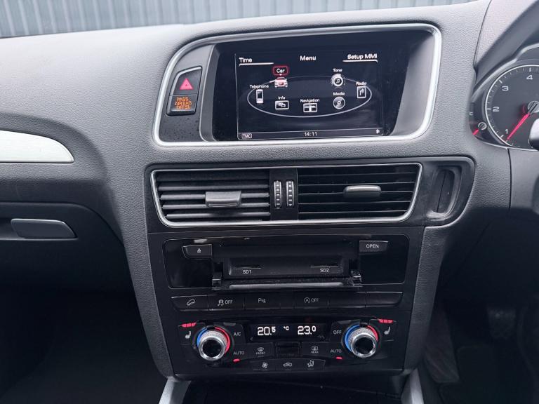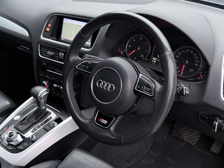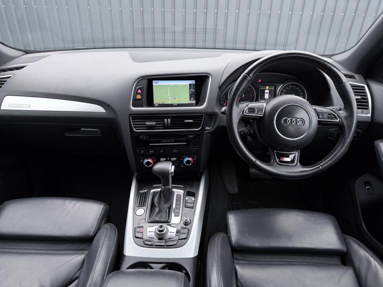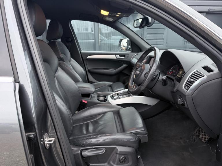 WE ARE DELIGHTED TO PRESENT THIS STUNNING 1 PREVIOUS OWNER AUDI Q5 FACELIFT MODEL, FINISHED IN AN ELEGANT GREY EXTERIOR. THIS EXCEPTIONAL VEHICLE COMBINES STYLE, COMFORT, AND ADVANCED TECHNOLOGY TO DELIVER A DRIVING EXPERIENCE THAT IS BOTH ENJOYABLE AND PRACTICAL. THE INTERIOR FEATURES A FULL BLACK LEATHER S-LINE TRIM WITH HEATED FRONT SEATS, ELECTRIC LUMBAR SUPPORT FOR ENHANCED COMFORT. KEYLESS ENTRY KEYLESS START, BI-XENON HEADLAMPS WITH DAYTIME RUNNING LIGHTS AND A HEADLAMP CONVERTER FOR RIGHT-SIDE DRIVING ENSURE OPTIMAL VISIBILITY AND SAFETY. DRIVING DYNAMICS ARE ENHANCED BY AUDI DRIVE SELECT (COMFORT/AUTO/DYNAMIC/INDIVIDUAL) AND A 3D SATELLITE NAVIGATION SYSTEM. TECHNOLOGICAL FEATURES INCLUDE DAB RADIO, DVD DRIVE, 2 X SD CARD SLOTS, INTERNAL HARD DRIVE, UPGRADED SOUND SYSTEM, AND BLUETOOTH HANDS-FREE CONNECTIVITY. CONVENIENCE IS FURTHER ELEVATED WITH ELECTRIC FOLDING MIRRORS, ELECTRIC BOOT LID, DUAL-ZONE CLIMATE CONTROL, CRUISE CONTROL, AUTOMATIC LIGHTS, AND RAIN-SENSING WIPERS, HEATED AND COOLED CUP HOLDERS PROVIDE YEAR ROUND COMFORT AND CONVENIENCE, KEEPING YOUR DRINKS PERFECTLY WARM OR REFRESHINGLY CHILLED THROUGHOUT EVERY JOURNEY. THE VEHICLE IS ALSO EQUIPPED WITH FRONT AND REAR PARKING SENSORS WITH DISPLAY, REAR PRIVACY GLASS, STRIKING 20-INCH ALLOY WHEELS, FULL SERVICE HISTORY AND IS SUPPLIED WITH 2 KEYS. ALL OUR VEHICLES COME WITH A MINIMUM OF 6 MONTHS MOT, A 6-MONTH COMPREHENSIVE WARRANTY, SERVICED IF DUE WITHIN 6,000 MILES OR SIX MONTHS, PRE-DELIVERY INSPECTION, SAFETY CHECKED, HPI CHECKED, FINANCE ARRANGED, AND ROAD TESTED FOR A MINIMUM OF 100 MILES FOR YOUR PEACE OF MIND. 20GB Jukebox for Storing and Managing Music Files - WMA and MP3 Format, 20in Alloy Wheels - 5-Segment-Spoke Design, AMI - Audi Music Interface, AUX-IN Socket, Acoustic Windscreen, Air Conditioning - Deluxe Automatic at the Rear, Alarm - Thatcham Category 1, Aluminium Roof Rails, Amplifier - 6 Channel, Audi Drive Select, Audi Parking System Plus, Audi Sound System, Auto-Dimming Rear-View Mirror, Automatic Headlight Range Adjustment, Body Coloured Bumpers, Bumpers - S line Front, Car Jack, Cloth Headlining in Black, Cruise Control, DAB Digital Radio, Deluxe 3-Zone Climate Control, Display Screen Colour 7in High Resolution, Door Mirrors - Electrically Adjustable and Heated, EBD - Electronic Brakeforce Distribution, ESP - Electronic Stability Programme, Electromechanical Parking Brake, European Navigation Data, First Aid Kit, Front Fog Lights, Front Passenger Airbag Deactivation Switch, Hard Disk Navigation with Topographical Map Display, Headlight Washers, Headlights - Bi-Xenon Plus, Headlights - Light Sensor, Heated Front Seats, Inlays - Matt Brushed Aluminium, Misfuelling Inhibition, Mobile Telephone Preparation - Bluetooth Interface, Pollen Filter, Power Operated Tailgate, Privacy Glass, Rear Parking Sensors, Remote Boot Release, Rest Recommendation System, Roof Bars and Storage Bag, S Line Side Skirts, S Line Suspension, S line Sill Plates and Aluminium Loading Strip for the Boot, SD Card Reader x2, SDHC Card Reader, Seats - Split Folding Rear - 60-40, Spoiler, Styling Package - S line Exterior, TP Memo - Automatically Saves Traffic News, Tailgate - Lid Closing Assistance Unit, Tailgate - Programmable Angle for the Luggage Compartment Lid, Technology Package, Traction Control, Tyre Pressure Loss Indicator, Warning Triangle