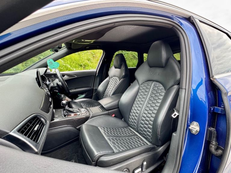 ELECTRIC GLASS PANROOF + RS6 BUCKET BLACK NAPPA LEATHER SEATS + HEATED SEATS + ALL USUAL RS6 EXTRAS INCLUDING: SLIDING GLASS PAN ROOF + DYNAMIC PACK + SPORTS EXHAUST + 21”INCH RS6 ALLOY WHEELS + RED CAILPERS + COLOUR WIDESCREEN SAT NAV + DAB RADIO + BLUETOOTH + BOSE SOUND SYSTEM + FRONT AND REAR PARKING SENSORS + PARK ASSIST + RS6