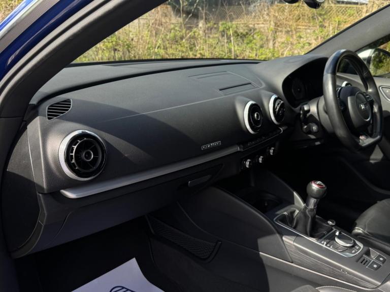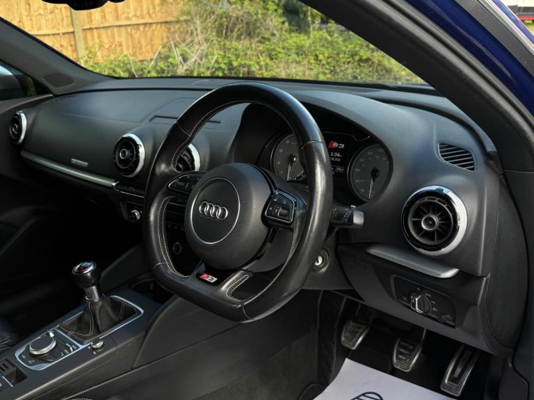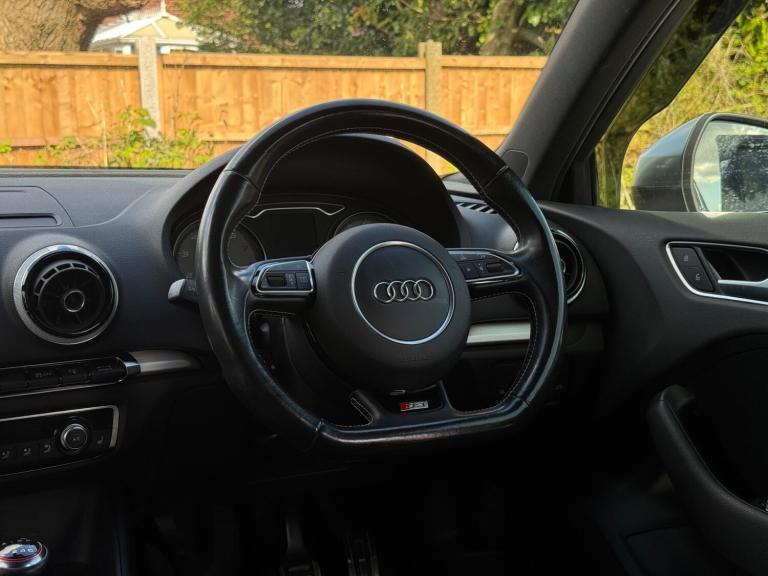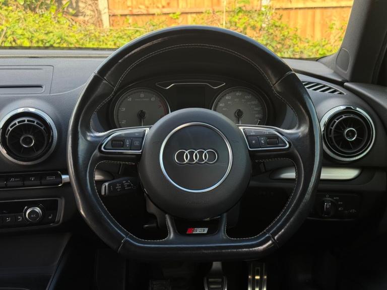 SERVICE HISTORY - 5 SERVICES - 3 MAIN DEALER SERVICES18in Alloy Wheels - 5-Parallel Spoke Design Partly PolishedSatellite Navigation System - SD Card BasedFine Nappa Leather - BlackCruise ControlPrivacy GlassEquipment:Parking Sensor(s)Climate ControlLeather Trim18'' Alloy WheelsPrivacy GlassThis 2015 Audi S3 TFSI boasts a clear vehicle history, offering you peace of mind. Powered by a 2.0 litre petrol engine and featuring a four wheel drive drivetrain, this Euro 6 compliant model is equipped with Bi Xenon Plus headlights, a tyre pressure monitoring system, and heated front seats for added comfort. You'll also appreciate the convenience of mobile telephone preparation with a Bluetooth interface and dual zone electronic climate control, all contributing to a refined driving experience.Experience exhilarating performance with this Audi S3, capable of accelerating from 0 to 62 miles per hour in just 5.3 seconds, a figure that sets it apart from many other vehicles in its class. Beyond its impressive speed, this S3 also offers generous boot space, making it a practical choice for everyday use and longer journeys alike.