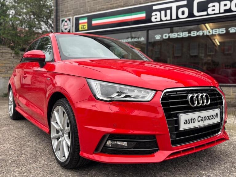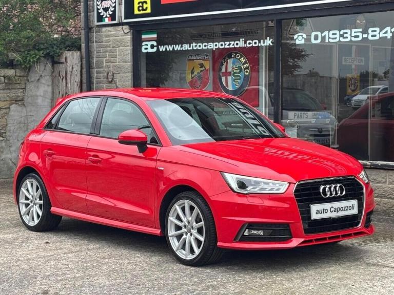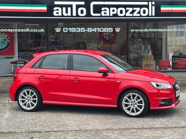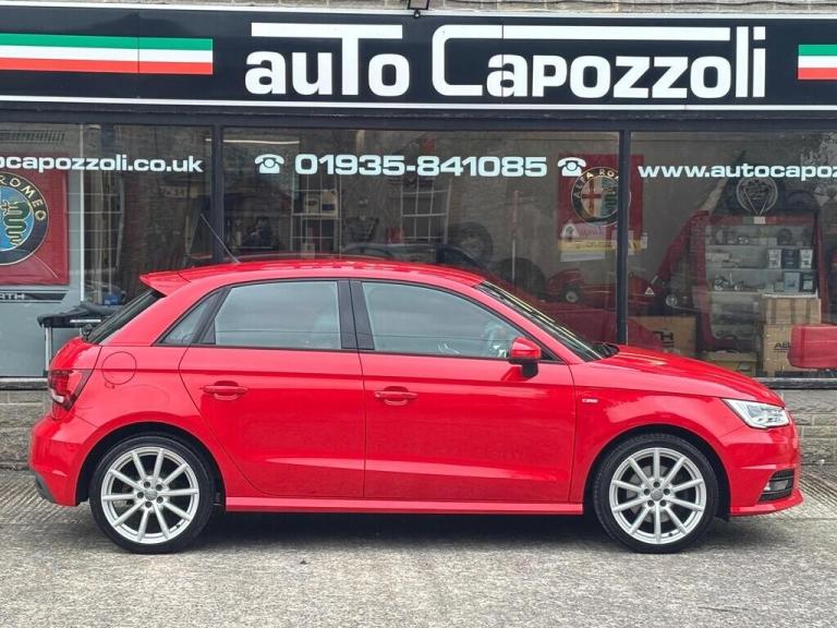 GREAT LOOKING TWO OWNER LOW MILEAGE AUDI A1 1.4 TFSI S LINE 5 DOOR SPORTBACK, ONLY 52K MILES WITH FULL SERVICE HISTORY, FINISHED IN GORGEOUS MISANO RED PEARL WITH HALF BLACK LEATHER SPORT SEATS, GREAT SPEC S LINE WITH FRONT AND REAR ACOUSTIC PARKING SYSTEM, AUTO LIGHTS/WIPERS, FRONT ARMREST, CRUISE CONTROL, AUTO DIM REAR VIEW MIRROR, 6.5'' DAB RADIO/SATELLITE NAVIGATION PREPARATION, ALUMINIUM LOOK AIR VENT SLEEVES, Air Conditioning, 4 Electric Windows, Electric Door Mirrors, Remote Central Locking, On Board Computer, Multi Function Black Leather 3 Spoke Sports Steering Wheel, Rear Headrests, 17'' 10 Spoke Design High Gloss Alloy Wheels, S-Line Suspension, Front Fog Lights, Xenon Headlights with Headlight Wash, ASR - Anti Slip Regulation, S Line Badges on Wings, S Line Body Styling, S Line Roof Spoiler, 6 Speed Manual, Full service history, 5 seats, Red, 2 owners, Upgrades - Acoustic Parking System - Front and Rear, Colour-Misano Red, Audi Parking System Plus, Light and Rain Sensors, Rear Roof Spoiler, Air Vent Sleeves - Aluminium Look, Front Centre Armrest, Cruise Control, Light and Rain Sensor Package, Auto-Dimming Rear-View Mirror, AUTO CAPOZZOLI ILCHESTER, Est Since 1959, Alfa Romeo/Abarth/Fiat Specialists, £9,995 Features Include: , 17in alloy wheels - 10-spoke design high gloss, body coloured door mirrors, door mirrors - electrically adjustable and heated, heat insulating glass - windscreen and side windows, polished tailpipes, s line badges on the front wings, s line design body styling, s line roof spoiler, aux-in socket, concert radio, dab digital radio, display screen - 6.5in high gloss black, mobile telephone preparation - bluetooth interface, sd card reader x2, esc - electronic stabilisation control, isofix child seat mounting, remote central locking with 2 fold away keys, thatcham category 1 alarm and immobiliser, air conditioning, cloth headlining in black, door sill trims - aluminium with s line logo, handbrake grip - leather, head restraints - rear, split folding rear seat, sports gear knob with aluminium trim, steering wheel - 3-spoke leather - multi-function - sports, audi drive select, drivers information system - dis, s line sports suspension, tyre pressure monitoring system, front fog lights, led rear lights, xenon plus headlights, 17'' Alloys