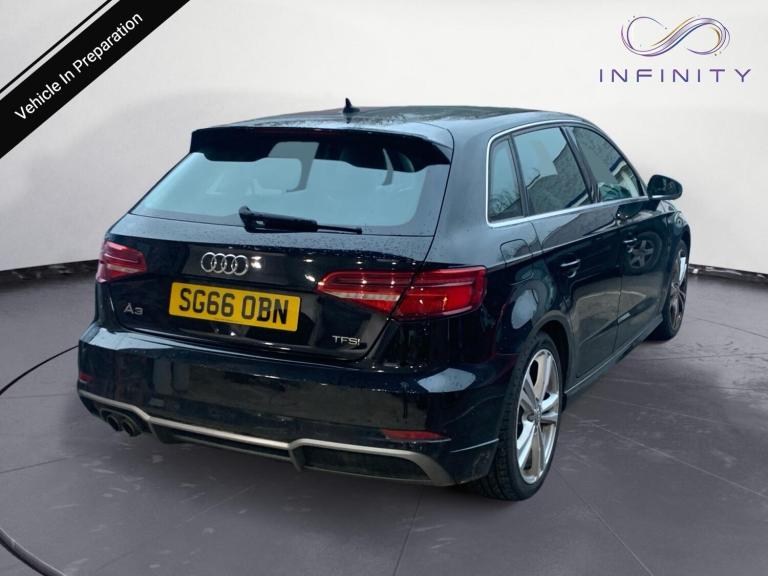 Infinity Automotive Solutions are pleased to market this stunning A3 1.4 TSI CoD S Line Sportback. An excellent example finished in Brilliant Black. Just 2 owners from new and comes with a full service history. Long MOT valid until 18/10/2026. Fully compliant with ULEZ and CAZ regulations. Big spec includes Apple Car Play, Android Auto, part leather S Line interior, DAB radio, Bluetooth, sat nav, cruise control, parking sensors, 18 inch S Line alloy wheels, S Line body styling, LED headlights and LED rear lights, auto dimming rear view mirror, dual zone climate control with automatic air conditioning and much more Service history: 02/09/2016 6 miles PDI @ Audi 17/06/2017 9,844 miles @ Audi 20/01/2018 18,669 miles @ Audi 10/07/2018 24,669 miles @ Audi 25/05/2021 38,278 miles @ Independent 06/07/2023 53,251 miles @ Independent 16/10/2024 60.325 miles @ Independent 17/10/2025 64,660 miles @ Independent Infinity Automotive Solutions are a local family run business. We are located in Hilsea, Portsmouth and close to local bus and rail connections. The closest rail stations are, Hilsea, Havant and Cosham. We will be more than happy to collect you from either of these subject to availability. Infinity Automotive Solutions opened in 2019. We have a team consisting of over 20 years experience in the motor industry and have a 5 star Google and AutoTrader review rating. We always strive to go the extra distance for customers and we don't just stop at providing the best service before your purchase. We always want to make the after sales the best experience for you too. If you are looking for finance, we work with one of the leading finance brokers in the UK who will find you the best deal possible. Weather that be hp, pcp or personal loan. We prepare all our vehicles to a high standard. This includes a multi point pre delivery inspection with every vehicle, at least 6 months MOT and service plus a full professional valet. For your peace of mind a 3 month guarantee is provided and extended options are available up to 2 years. Part exchange is very welcome and we will be happy to discuss this with you prior to viewing. To arrange a viewing please contact us or pop in to see us over a cup of tea or coffee. Thank you for considering us for your next vehicle purchase and we hope to do business with you.
