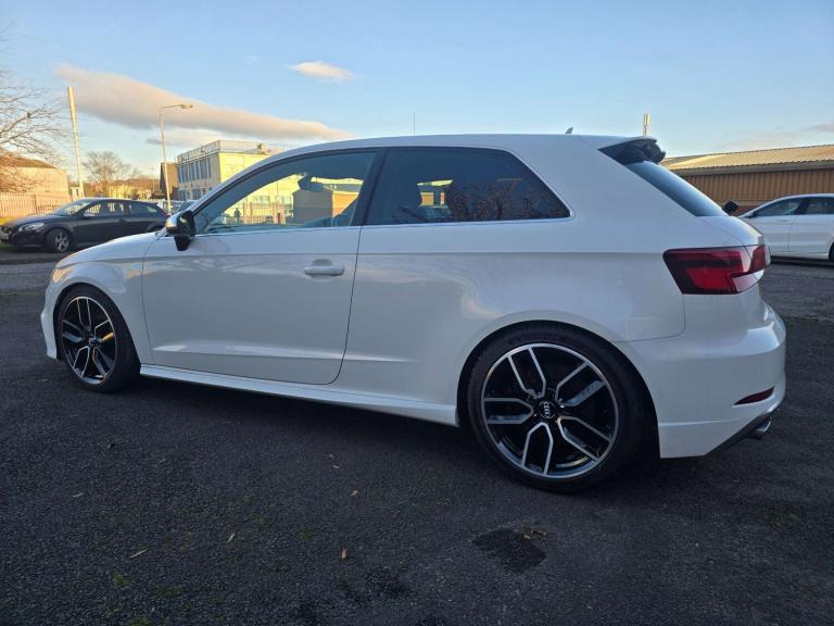 AUDI S3 2.0 TFSI QUATTRO, 6 SPEED MANUAL, 4WD.IBIS WHITE WITH FULL BLACK LEATHER INTERIOR,57K MILES, SERVICE HISTORY 6 SERVICES. ALLOY WHEELS, FULL LEATHER, AUDI MAGNETIC RIDE, NAVIGATION, BLUETOOTH, LED LIGHTS, HEATED FRONT SEATS.STUNNING CAR IN SUPERB CONDITION WITH A VERY GOOD SERVICE HISTORY.WE HAVE A WIDE RANGE OF OVER 30 CARS IN STOCK AND WE ARE OPEN 7 DAYSTHIRD PARTY FINANCE APPLICATIONS WILL INCUR AN ADDITIONAL ADMINISTRATIVE FEE OF £299 IF LOOKING FOR FINANCE PLEASE CONTACT US DIRECTLY. WE HAVE A LARGE PANEL OF LENDERS AND WE CAN HELP IF YOU HAVE POOR CREDIT.PLEASE CONTACT IAIN ON [Phone number removed] FOR FURTHER DETAILS. WWW.CLYDECARS.CO.UK
