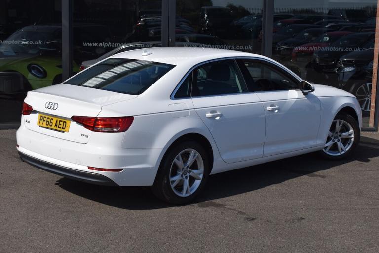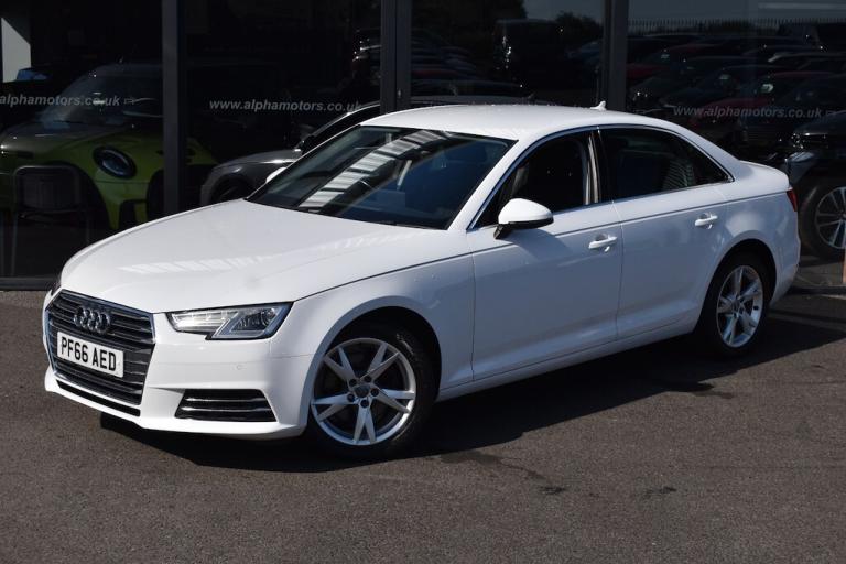 ++PRE-BOOKED APPOINTMENT REQUIRED++RESERVE & COLLECT++ Alpha Motors a family-owned award-winning business for over 40 years in Wigan are proud to present this stunning Audi A4 Sport TFSI. Presented in stunning Ibis White paintwork and sitting on 17-inch Silver alloys. Inside boasts a Black cloth seats with Silver interior detailing. Great spec car with Front and Rear Park Sensors, Electric Windows, Electric Mirrors, Auto Lights, Cruise Control, Auto Wipers, DAB Radio, SAT-NAV, Bluetooth, Carplay, Digital Climate Control, Keyless Start, LED Daytime Running Lights, 17-inch Silver Alloys, Plus Much More. SERVICE HISTORY: service @ 51795, 58243. Professionally prepared to the highest standards and presented with 1 key, HPI clear report, Call today to register your interest!. 17in Alloy Wheels - 7J 5-Spoke Y Design,3-Spoke Leather Trimmed Multi-Function Sport Steering Wheel,6-Airbag System,Air Inlets - Titan Black with Two Horizontal Inlays in Chrome,Anti Theft Locking Wheel Bolts,Anti-Theft Alarm,Audi Connect - 3 Month Trial,Audi Drive Select,Audi Smartphone Interface,Audi Sound System,Auto-Dimming Rear-View Mirror,Bluetooth Interface,Body Coloured Door Mirrors,Chrome-Plated Trims for Exhaust System,Comfort Dynamic Suspension,Cruise Control with Speed Limiter,DAB Digital Radio,Deluxe 3-Zone Electronic Climate Control,Door Mirrors - Electrically Adjustable and Heated with Built-in LED Indicators,Door Sill Trims with Aluminium Inlay,Drivers Information System - 5in Monochrome Display,ESC - Electronic Stabilisation Control inc ABS - ASR and EDL,Electric Boot Lid Release,Electric Windows - Front and Rear,Electromechanical Parking Brake,Electromechanical Power Steering,First Aid Kit and Warning Triangle,Front and Rear Floor Mats,High Gloss Package,ISOFIX Child Seat Mounting and Top Tether,Inlays - Aluminium Ellipse - Silver,Keyless Go,LED Interior Light Pack,Light and Rain Sensors,Luggage Compartment Mat,MMI Navigation - SD Card Based,Manual Height Adjustment for Front Seats,Model and Engine Technology Badges at Rear,Multi Collision Brake Assist,Non-Smoking Package,Parking System Plus,Pop-Up Bonnet for Pedestrian Protection,Pre-Sense City,Radiator Grille - Twilight Grey Matt with Inlays in Chrome,Rear Diffuser in Twilight Grey Matt,Remote Central Locking,Seat Belt Monitoring,Space Saver Spare Wheel,Split-Folding Rear Seat Bench in 3 Parts - 40-20-40 with Rear Centre Armrest,Sun Visors - with Vanity Mirror,Tool Kit and Jack,Towbar Preparation,Tyre Pressure Warning Light,Variable Restraint System,Windscreen with Acoustic Glazing,Xenon Headlights with LED Daytime Running Lights,Ibis White,System Cloth - Black