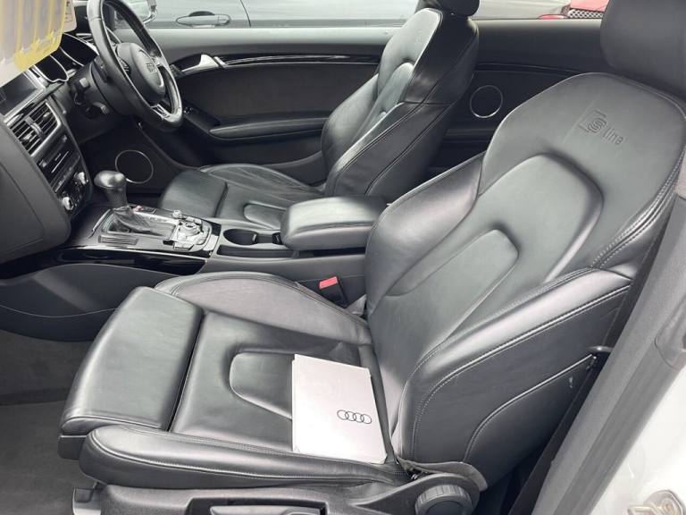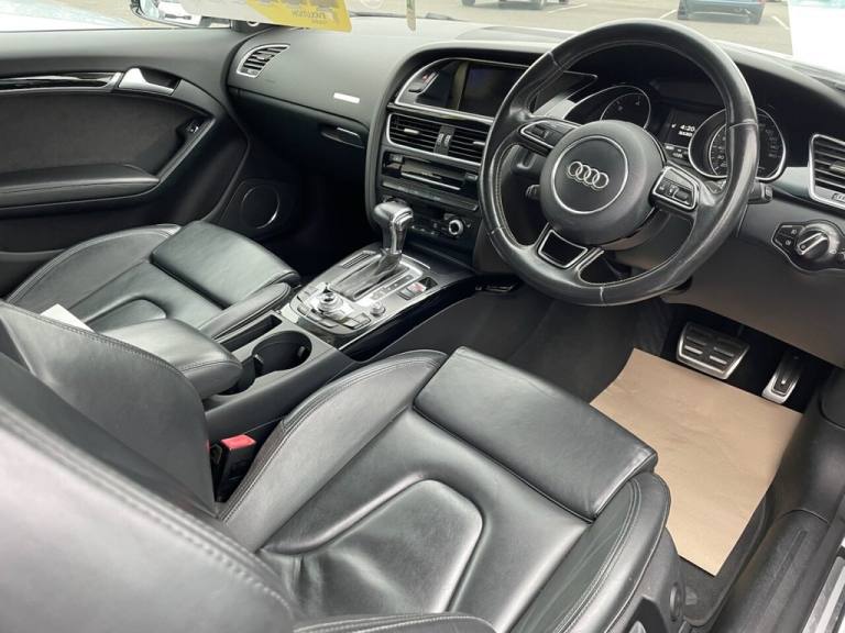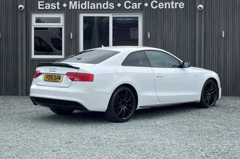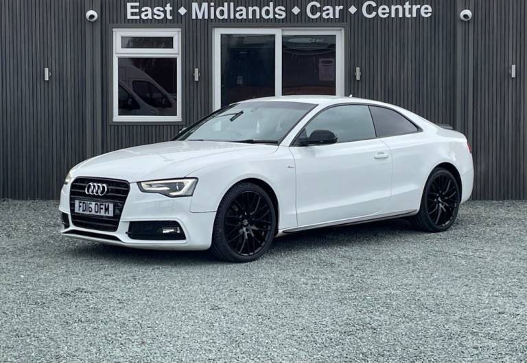 STUNNING AUDI A5 S LINE BLACK EDITION PLUS AUTOMATIC COUPE IN WHITE, FRESH MOT & SERVICE DONE, EXCELLENT SPECIFICATION INCLUDING FULL LEATHER WITH HEATED FRONT SPORTS SEATS, AUDI MMI NAVIGATION & MEDIA SYSTEM WITH PREMIUM BANG & OLUFSEN SOUND SYSTEM, BLUETOOTH HANDS-FREE, AUX/USB CONNECTIONS, DAB RADIO, SD CARD READER, AUDI MUSIC INTERFACE, AUDI PARKING SYSTEM PLUS, CRUISE CONTROL, SPORT SUSPENSION, BI-XENON PLUS HEADLIGHT WITH AUTOMATIC ACTIVATION, 3 ZONE CLIMATE CONTROL, AUTO BOOT LID, INTERIOR CHOME PACKAGE, BLACK STYLING PACKAGE, SPOILER, DYNAMIC BUMPER, PRIVACY GLASS, ELECTRICALLY ADJUSTABLE & HEATED DOOR MIRRORS, 19in ALLOY WHEELS East Midlands Car Centre is A family business you can trust. We have built our reputation based on the quality of cars we supply and the outstanding customer service we deliver. Here at East Midlands Car Centre We are extremely passionate about what we do, we endeavour to ensure all our customers have a warm family friendly experience whilst choosing the right vehicle and receiving great value for money. HPI clear. Part exchange welcome. Open late by appointment. Extended warranties available up to three years. Finance Available NO deposit required. All vehicles inspected and serviced by Lutterworth Ford. Any further information or viewing please contact us on 01455 203659 or [Phone number removed] Nationwide home delivery service available. All specification data above provided by third party source, we accept no liability for errors in this advert, please call the sales team to confirm any of the details above. .12V Power Socket x2, 19in Alloy Wheels - 10-Spoke Y Design, ABS - Anti-Lock Braking System, Airbags - Driver, Airbags - Front Passenger, Airbags - Front Side System, Airbags - Head Level Side For Front and Rear, Alarm - Thatcham Category 1, AMI - Audi Music Interface, Amplifier - 10-Channel, Anti Theft Locking Wheel Bolts, Audi Parking System Plus, Auto Opening Boot Lid, Auto-Dimming Rear-View Mirror, Automatic Wipers with Rain Sensor, AUX-IN Socket, Bang and Olufsen Sound System, Black Styling Package, Climate Control - Electronic 3-Zone, Cloth Headlining in Black, Colour Centre Console Screen, Colour Drivers Information System - DIS, Concert Radio - MP3-CD Player, Cruise Control, Cup Holders - Centre Console, DAB Digital Radio, Door Mirrors - Electrically Adjustable and Heated, Dynamic Bumper, EDL - Electronic Differential Lock, Electric Windows - Front, Electromechanical Parking Brake, Electromechanical Power Steering, ESP - Electronic Stability Programme, Exhaust Tailpipe - Chrome Rolled Finish, First Aid Kit, Front and Rear Floor Mats, Front Centre Armrest, Front Fog Lights, Front Passenger Airbag Deactivation Switch, Front Sports Seats, Gear Knob - Perforated Leather, Gloss Black Door Mirrors, Headlights - Automatic Activation, Headlights - Bi-Xenon Plus, Headlights - Range Adjustment, Heated Front Seats, Inlays - Piano Finish - Black, Intelligent Key, Interior Chrome Package, ISOFIX Child Seat Mounting for Front Passenger, ISOFIX Child Seat Preparation for Rear Seats, LED Daytime Running Lights, LED Rear Lights, Misfuelling Inhibition, Mobile Telephone Preparation - Bluetooth Interface, Pedals in Stainless Steel, Privacy Glass, Radiator Grille - Matt Black, Radiator Grille Frame - Highly Polished Black, Rear Diffuser - High Gloss Black, Rest Recommendation System, Satellite Navigation System Plus - HDD-Based MMI, SD Card Reader, Seats - Front Sports with Electric Lumbar Support, Side Mirrors in High-Gloss Black, Side-Sills in High-Gloss Black, Space Saver Spare Wheel, Speakers x14 - 505 Watts, Split-Folding Rear Seats, Spoiler - Body Coloured, Sport Suspension, Steering Column - Rake and Reach Adjustment, Steering Wheel - 3-Spoke Leather-Multifunction-Flat Bottomed-Shift Paddles, Steering Wheel - Gear-Shift Paddles, Tool Kit and Car Jack, Tyre Pressure Monitoring System, Warning Triangle