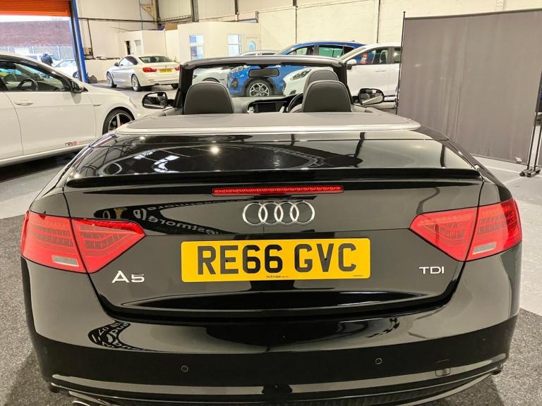 This 2016 Audi A5 Cabriolet TDI S line Special Edition Plus boasts a full service history and a clear vehicle history check, offering excellent provenance for its low mileage of just 61,451 miles. This stylish convertible features a 2.0 litre Euro 6 diesel engine, ensuring efficient performance. Inside, you'll find the comfort of Electronic 3-Zone Climate Control, and parking is made simple with the Audi Parking System Advanced, which includes front and rear sensors, alongside an Acoustic Parking System for the rear. Automatic headlights are also included, activated by a light sensor.The A5 Cabriolet offers a generous boot space, making it practical for everyday use as well as weekend getaways. Its performance is equally impressive, with an acceleration of 0-60mph in just 8.0 seconds, demonstrating a responsiveness that sets it apart. The S line Special Edition Plus trim level signifies a higher specification, enhancing the overall appeal and driving experience compared to other models.Fully HPI clear and mileage checked for peace of mind. This car looks and drives absolutely beautiful. Part exchange welcome and delivery not a problem. Please call [Phone number removed] for more details.
