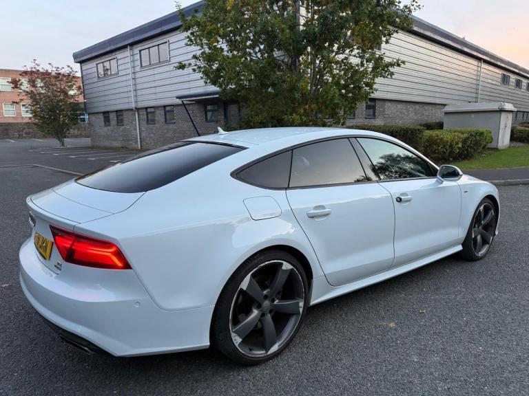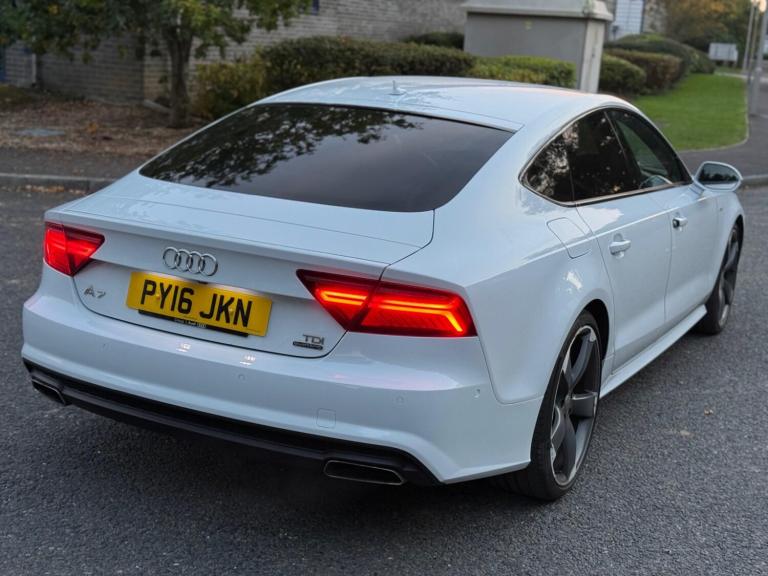 Audi A7 3.0 TDI V6 Black Edition Sportback quattro S Tronic - Luxury, Power & Style Registration: PY16 JKN Registered: 15 June 2016 Mileage: 129000 Transmission: 7-Speed S Tronic Automatic Fuel Type: Diesel Drivetrain: quattro All-Wheel Drive Power: 272 PS (268 bhp) Engine: 3.0L V6 TDI (Euro 6 compliant) CO? Emissions: 142 g/km Colour: White Body Type: 5-Door Sportback Owners: 1 Previous Owner Trim Level: Black Edition Road Tax: £[insert amount if known] MOT Expiry: [insert date if applicable] Condition: Excellent Throughout VIN: WAUZZZ4GXGN132881 ? Performance & Efficiency The 3.0 TDI V6 engine paired with Audi's 7-speed S Tronic automatic gearbox and quattro all-wheel-drive system delivers exceptional performance and control -- 268 bhp of smooth, refined power with impressive fuel economy. With Audi Drive Select, you can tailor your driving experience from comfort to dynamic at the touch of a button. ? Technology & Entertainment BOSE Surround Sound System - premium audio experience MMI Navigation Plus with DAB Radio & SD Card Mapping Bluetooth Connectivity for calls & media Audi Music Interface (AMI), USB & AUX inputs Colour Driver Information System (DIS) ? Exterior Styling 21"" 5-Arm Rotor Design Alloy Wheels - Matt Titanium Finish Black Styling Package with High Gloss Details Matrix LED Headlights with Dynamic Front & Rear Indicators Retractable Rear Spoiler Privacy Glass & Acoustic Glazing S Line Body Styling - Bumpers, Skirts & Diffuser Platinum Grey Rear Diffuser Insert Heated, Electrically Adjustable Mirrors with Memory ? Interior Comfort & Luxury Deluxe 4-Zone Climate Control Heated, Electrically Adjustable Front Seats with Memory S Line Flat-Bottomed Multifunction Leather Steering Wheel with Paddle Shifters Piano Black Inlays & Alcantara Door Inserts Auto-Dimming Rear-View Mirror Keyless Go & Power-Operated Boot Lid Split-Folding Rear Seats for extra practicality Cloth Headlining in Black ? Safety & Security ABS, ESC, and ASR Stability Systems Audi Hill Hold Assist Multiple Airbags & ISOFIX Mountings Front Passenger Airbag Deactivation Switch Anti-Theft Alarm & Remote Central Locking Tyre Pressure Monitoring System Audi Parking System Plus with Front & Rear Sensors ? Highlights Only 1 Previous Owner Excellent Condition inside and out High Spec Black Edition with upgraded styling & BOSE audio Powerful yet economical V6 TDI engine quattro all-wheel drive for superior traction in all conditions ? Summary This Audi A7 Black Edition Sportback offers the perfect blend of executive luxury, performance, and practicality. The 3.0 TDI V6 engine paired with S Tronic transmission delivers effortless acceleration and refinement, while the Black Edition styling ensures it looks as good as it drives. A stunning, well-maintained example with a full complement of premium features -- ready to drive away. ? Contact now to arrange a viewing or test drive - you won't be disappointed!.