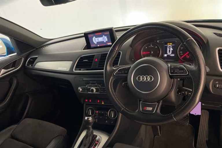 STUNNING WITH FULL SERVICE HISORY ONLY 2 OWNERS AWD 4X4 . SPEC INCLUDES SAT NAV / LEATHER MULTI FUNCTION STERRING WHEEL WITH CRUISE CONTROL / AIR CON + CLIMATE CONTROL / LED LIGHTS / PARKING SENSORS WITH ON SCREEN DISPLAY ISOFIX SEATS / DAB RAIDO / AUTO LIGHTS / POWER OPEN CLOSE TAILGATE BOOT LID / The 2016 Automatic Audi Q3 is a luxurious and stylish compact SUV. Its sleek design and advanced automatic transmission make it a pleasure to drive. With a spacious and comfortable interior, it is perfect for both city commuting and long distance journeys. The Audi Q3's powerful engine and state-of-the-art technology make it a top choice for those seeking a high-end, reliable vehicle.