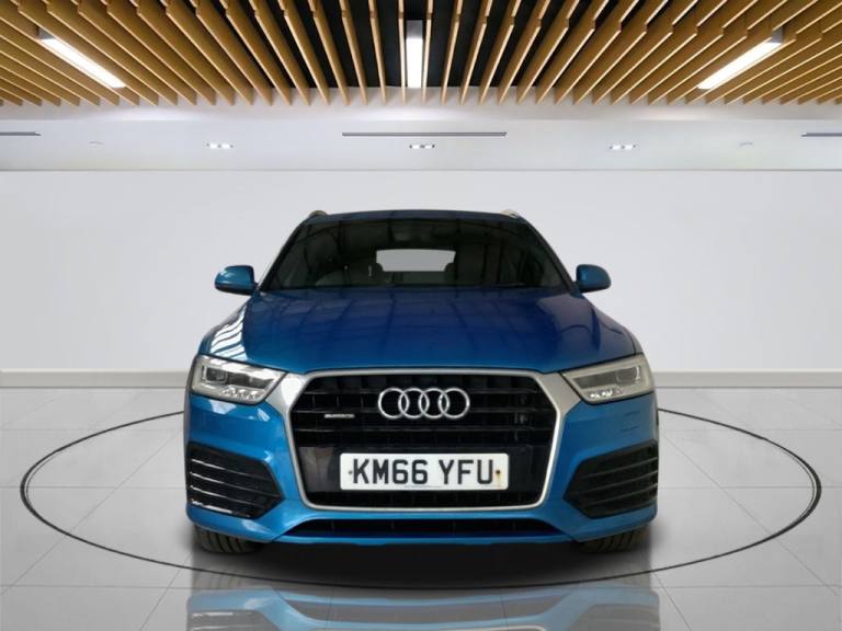 Why This Audi Q3 Wins? This 2016 Audi Q3 TDI S line is a well maintained, two-owner example offering a superb blend of style, performance, and efficiency. Powered by a 2.0 litre Euro 6 diesel engine and equipped with four wheel drive, it delivers confident handling in all conditions. The S line trim enhances its sporty appearance and interior specification, while a full service history, most recently completed at 94,950 miles on 21st January 2026, ensures peace of mind. With an MOT valid until November 2026, this Audi Q3 is ready for many more miles of enjoyable driving. Performance and Practicality The Q3 TDI S line balances responsive performance with remarkable efficiency, achieving up to 55 miles per gallon. Low CO2 emissions and a low insurance group make it economical to run, while its practical boot space and SUV versatility provide ample room for luggage, shopping, or family needs. This combination of efficient performance, spacious practicality, and confident driving capability makes the Q3 a well-rounded choice for both everyday use and longer journeys. Your Peace of Mind? - Clear vehicle history check - Optional 3-36-month extendable warranties - Free 12-month AA roadside assistance - Fully prepared to showroom standard with its existing MOT and servicing, and we can organise any further MOT or service enhancements at your request. - Drive Away, Insurance Available - No hidden or extra costs, like admin fees Autotraders 2024 Insights: Top 3 Audi Q3 Buyer Priorities: - Economical diesel performance with low running costs - Practical and versatile SUV design with ample boot space - Well maintained with a comprehensive service history - The Audi Q3 TDI S line delivers a compelling combination of sporty style, efficient performance, and practical versatility, making it an ideal choice for buyers seeking a reliable and economical compact SUV. Stress-Free Next Steps: - Free Part Exchange Valuation - £0 Deposit Car Finance - Includes free credit checker - Reserve for £99 - Fully refundable.6.5in Display Screen, 8 Passive Speakers, AMI - Audi Music Interface, Bluetooth Interface, Concert Radio, DAB Digital Radio, Satellite Navigation System - SD Card Based, Towbar Preparation, 18in Alloy Wheels - 5-Twin-Spoke Design Partly Polished, Aluminium Roof Rails, Aluminium Window Trims, Anti Theft Locking Wheel Bolts, Body-Coloured Door Mirrors - Electrically Adjustable and Heated with Integrated LED Indicator Signals, Bright Moulding, Chrome-Plated Trims for Exhaust System, Door Mirrors - Heated-Electrically Adjustable-Folding, Electric Windows - Front and Rear, Fog Lights - Chrome Surrounds, Full Body-Colour Finish on Bumpers-Wheel Arch Trims-Lower Door Trims, Heated Windscreen Washer Jets, S Line Badges on Front Wings, S Line Body Styling, S Line Radiator Grille with Horizontal Struts in High-Gloss Black, Space Saver Spare Wheel, Windscreen with Sunband, Heated Front Seats, 3-Spoke Multi-Function Q-Design Steering Wheel, 4-Way Electric Lumbar Support for Front Seats, Cloth Headlining and Dashboard in Black, Door Sill Trims with S Line Logo, Dual-Zone Electronic Climate Control, Floor Mats - Front and Rear in Velour, Front Centre Armrest, Front Sports Seats, Gear Knob - Perforated Leather, Inlays - Matt Brushed Aluminium, Power Operated Tailgate, Reversible Luggage Compartment Floor, Seats - Split Folding Rear Backrest, Smoking Package, Stainless Steel Loading Sill Protector, Steering Wheel - Height and Reach Adjustable, Tool Kit and Car Jack, Hainan Blue, All Weather LED Headlights, Dynamic Suspension, Electromechanical Power Steering - Speed-Sensitive Provides a Precise Steering Feel at High Speeds and Excellent Assistance when Parking., Front and Rear Fog Lights, Headlight Washer System, LED Tail Lights, Light and Rain Sensor, Audi Drive Select, Driver - Front Passenger - Front Side and Head Airbag System, Drivers Information System - DIS, ESP - Electronic Stability Programme, Efficiency Program in the Drivers Information System - DIS, Electromechanical Parking Brake, First Aid Kit, Front Passenger Airbag Deactivation Switch, ISOFIX Child Seat Mounting, Rear Parking Sensors, Remote Central Locking, Seat Belt Monitoring, Thatcham Category 1 Alarm and Immobiliser, Tyre Pressure Loss Indicator, Voice Control System, Warning Triangle, Washer Fluid Level Indicator