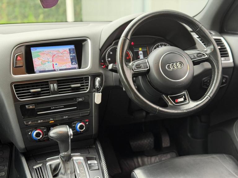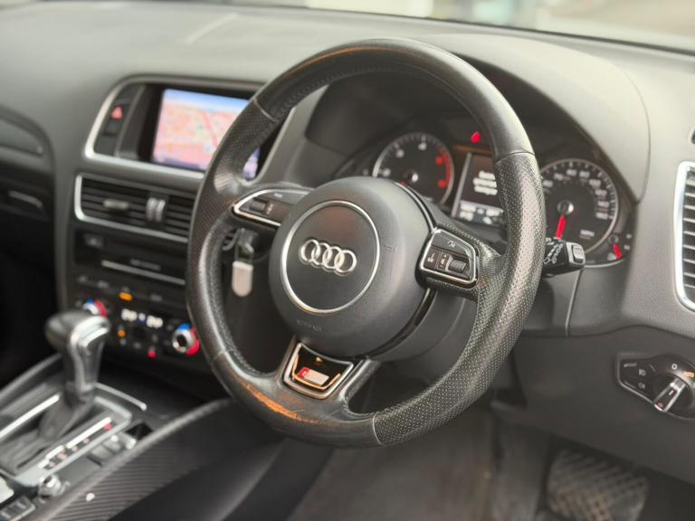 Audi Q5 2.0 TDI Quattro S Line Automatic finished in metallic grey with full black leather interior This 2016 model has covered 143314 miles and is powered by the reliable 2.0L CNHA diesel engine producing 190BHP paired with a smooth 7 speed tiptronic automatic gearbox and quattro four wheel drive system for confident performance in all conditions This well specified Q5 benefits from bi xenon headlights LED rear lights and front fog lamps power tailgate power folding heated mirrors dark tinted rear windows bright aluminium roof rails brushed aluminium interior trim and 20 inch alloy wheels Inside it features sports seats with electric lumbar support heated front seats multi function leather steering wheel with gearshift paddles cruise control dual zone climate control Audi navigation system plus Bluetooth connectivity DAB radio voice control front and rear parking sensors rain and light sensors and auto dimming rear view mirror Practical and refined this Q5 also includes ISOFIX child seat anchors a first aid kit stainless steel loading edge protection and a full tool kit with tyre repair kit Finished to Audis high standards this car combines luxury comfort and all weather capability in one stylish package Mileage 143314 Transmission Automatic Fuel Type Diesel Drivetrain Quattro 4WD BHP 190 Colour Metallic Grey Engine Code CNHA All our vehicles come with 3 months warranty as standard with the option to extend to 6 12 or 24 months for added peace of mind