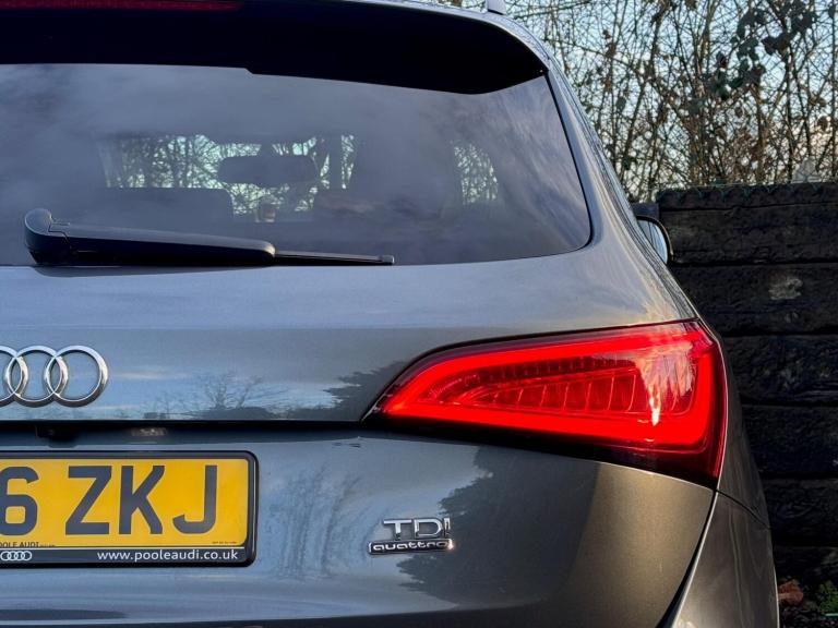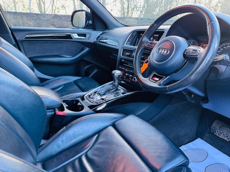 We are proud to present you this beautiful Audi Q5 S line Plus Quattro in grey colour and full black leather interior, much loved and cared for family car. Highly maintained by main dealer and in great condition both mechanically and cosmetically, comes with a free 12-month MOT upon request, 6 Months Nationwide warranty parts & labour.= SPEC = ULEZ compliant, Electric tailgate, black pack, front heated seats, reverse camera, full leather interior extended to the doors, 21-inch alloys, just refurbished, lumbar support, Cruise control, Multimedia screen, Enhanced Telephone preparation, Navigation, Bluetooth, AUX, CD player, DAB, FM/AM Radio, USB, front and rear parking sensors, Electromechanical Parking Brake, S Line Body Styling, ISOFIX and much more.= HISTORY & CONDITION = Free 12-month MOT upon request, Free 6-month warranty. It comes with all the paperwork and full-service history by Audi, serviced at: 14K, 21K, 41K, 59K, 70K 77K and last serviced at 93K miles. Timing belt also replaced by Audi at 70K miles in 2023. 2 Keys, HPI Clear. The car is in great condition inside and outside, video of the car also available on our website.= FINANCE = We also provide finance at competitive rates, give us a call for a free finance quote over the phone, from our panel of over 100 lenders. You can drive away the same day.= ABOUT US = We also take all types of part exchanges – Video viewing - Nationwide delivery - We take all major cards for payment - As standard all vehicles are supplied with a warranty which covers parts & labour valid nationwide (with an option to extend up to 48 months at an additional cost). We are based in Farnham, GU10 4JX.Please be aware that if you reserve this car on-line via the Autotrader reserve the car may already be sold, as our cars are advertised on many platforms. Auto trader reservation is not linked to our own systems and does not guarantee reservation of the car. Please contact us directly via a phone call, email, or WhatsApp to check the availability of the car and to reserve it.