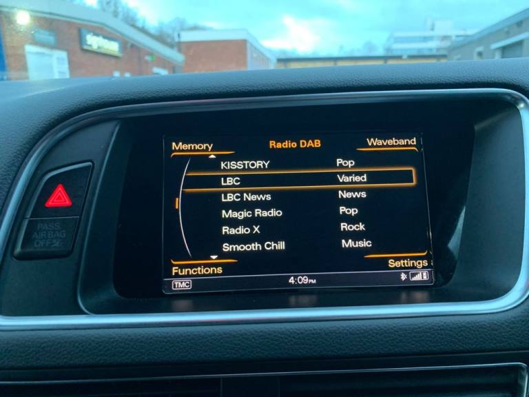 .Audi Warranty - Extended to 48 Months or 75000 Miles with Unlimited Mileage in First 24 Months, Audi Warranty - Extended to 60 Months or 90000 Miles with Unlimited Mileage in First 24 Months, Customised Paint, Bang and Olufsen Sound System, 20in Alloy Wheels - 5-Segment-Spoke Design, ABS - Anti-Lock Braking System, AMI - Audi Music Interface, Airbags - Driver, Airbags - Front Passenger, Airbags - Front Side, Alarm - Thatcham Category 1, Aluminium Roof Rails, Aluminium Window Trims, Audi Concert Radio, Audi Parking System Plus, Audi Sound System, Auto-Dimming Rear-View Mirror, Bluetooth Interface, Body Coloured Bumpers, Chrome Door Handles and Tailgate Strip, Chrome-trimmed - Flat-bottom Design Exhaust Pipe, Cloth Headlining in Black, Colour Drivers Information System - DIS, Cruise Control, DAB Digital Radio, Deluxe 3-Zone Climate Control, Diffuser - Platinum Grey, Door Mirrors - Electrically Adjustable and Heated, ESP - Electronic Stability Programme, Electric Windows - Front and Rear, Electromechanical Parking Brake, Electromechanical Power Steering, First Aid Kit, Front Centre Armrest, Front and Rear Floor Mats, Front and Rear Fog Lights, Headlights - Xenon, Heated Front Seats, Hill Descent Control, ISOFIX Child Seat Mounting, Inlays - Matt Brushed Aluminium, LED Rear Lights, Leather Package - Door Armrests, Light and Rain Sensor, MMI Navigation Plus, Misfuelling Inhibition, Power Operated Tailgate, Privacy Glass, Rear Spoiler - Body Coloured, Remote Central Locking, Rest Recommendation System, Roof Bars and Storage Bag, S line Sill Plates and Aluminium Loading Strip for the Boot, Seats - Front Electric Lumbar Support, Split Folding Rear Seat, Steering Column - Rake and Reach Adjustment, Steering Wheel - 3-spoke S line Multi-function Leather, Styling Package - S line Exterior, Technology Package, Three-point Seat Belts, Tool Kit and Car Jack, Towing Equipment - Preparation, Traction Control, Tyre Pressure Loss Indicator, Tyre Repair Kit, Warning Triangle
