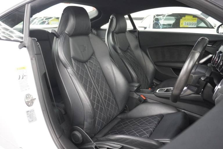 2016/66 Audi TT 1.8 TFSI coupe - 6 speed manual - Ibis White with full black fine Nappa quilted leather interior (heated front seats) - only 64k miles - 3 former keepers - 2 remote keys - Audi main dealer and independent garage service history - just serviced for sale with Audi DSR updated - fresh 12 months MOT with no advisories - Platinum warranty - fresh 12 months AA roadside assistance also included! Freshly refurbished alloy wheels in gloss black! Black Styling Pack! Heated front seats! Over £3k optional extras in total! Full 12 months MOT Platinum warranty included 12 months AA breakdown cover Autotrader Highly Commended Dealer 2018/19/20/21/22/23/24 AA Approved Dealer 2017/18/19/20/21/22/23/24 CarGurus Top Rated Dealer 2018/19/20/21/22/23.24 We are close to many local bus and train links. The nearest train station is Hairmyres which is on the East Kilbride line, if possible we will collect you if arranged by prior appointment. We have signed up to the AA Dealer Promise which means you are in safe hands dealing with us as an AA partner! All cars are provided with an AA history check, a minimum of 9 months MOT on all cars and 12 months AA breakdown cover or member upgrade as well as other exclusive AA benefits! Finance available?! Longer warranty options available!? Poor Credit = No Problem!? Part Exchange welcome with or without MOT?! Price checked to ensure best value!? Over 50 cars in stock!? Over 97% of our customers rate us 5 stars!.Audi Sound System, Deletion of Model and Technology Designation at Rear, Heated Front Seats, Extended Leather Package, Audi Warranty - Extended to 48 Months or 75000 Miles with Unlimited Mileage in First 24 Months, Ibis White, Fine Nappa Leather - Super Sport Seats - Black, 19in Alloy Wheels - 5-Twin-Spoke Design, 19in Alloy Wheels - 5-Arm Star Design, 4-Way Electric Lumbar Support for Front Seats, ABS - Anti-Lock Braking System, AMI - Audi Music Interface, All Weather LED Headlights, Anti Theft Locking Wheel Bolts, Anti-Theft Alarm, Audi Drive Select, Audi Virtual Cockpit, Bluetooth Mobile Telephone Preparation, Cruise Control, DAB Digital Radio, Door Mirrors - Electrically Adjustable and Heated, Door Sill Trims with S Line Logo, ESP - Electronic Stability Programme, Electric Windows - Front, Electromechanical Parking Brake, Extended Aluminium Look in Interior, First Aid Kit, Flat-Bottomed 3-Spoke Leather-Trimmed Multi-Function Sport Steering Wheel, Front Airbags with Front Passenger Deactivation, Front Centre Armrest, Front Sports Seats, Gear Lever Knob in Black Perforated Leather, Headlining - Black, ISOFIX Child Seat Mounting, Inlays - Matt Brushed Aluminium, Keyless Go, LED Tail Lights, Light and Rain Sensor, MMI Radio, Manual Air Conditioning, Non-Smoking Package, Progressive Steering, Radiator Grille - High Gloss Black, Remote Central Locking, Retractable Rear Spoiler, S Line Badge on the Steering Wheel, S Line Badges on the Front Wings, S Line Body Styling, Seat Belt Monitoring, Split-Folding Rear Seats, Sport Suspension, Tool Kit - Warning Triangle and Car Jack, Traction Control, Tyre Pressure Loss Indicator, Tyre Repair Kit
