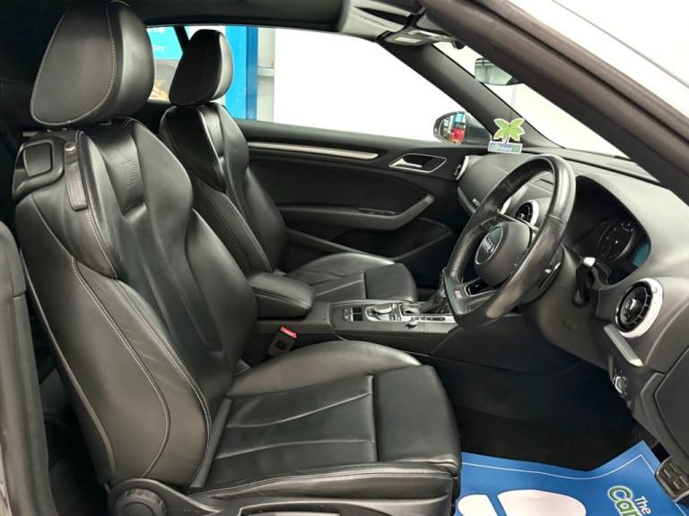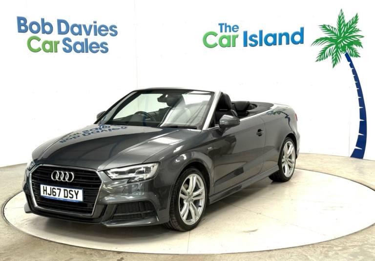Gorgeous Condition 1 Owner From New Automatic A3 S-Line Convertible in Monsoon Grey Metallic with Great spec inc over £2000 worth of upgrades. SATNAV & CarPlay, Upgrade Nappa Leather Embossed S-Line Heated Seats, Bluetooth Phone & Music Streaming, Cruise Control, Privacy Glass, Auto Lights & Wipers, Rear Parking Sensors, DAB Radio, AUX/USB, 18" Twin-Spoke Alloys, Air Conditioning & Dual Zone Climate Control, Multi-Function Steering Wheel, 2 Keys & Great AUDI Service History to list a few. 6 Months RAC Warranty Included***** Bob Davies Car Sales is established as a trusted supplier of quality cars. Family business providing low mileage cars for over 40 years. High standards, great reputation & 5-star customer service. Open 6 days. Best value in 100 mile radius. ***** Request a personal walk round on any car and well make sure youre happy before reserving, travelling or delivery. No pressure, no fuss, no fees. Secure with £100 refundable deposit.***** We deliver all over the UK to your door with our successful "Mouse to House" delivery. Wherever you live, we will bring your perfect car to you. Feel confident in the quality and condition of our vehicles, our warranty covers the UK.***** Best Rate Finance available to all, even for poor credit. No deposit needed just contact us and we will tailor to suit you. Part Exchange Welcome " Quality Cars at Sensible Prices".Fine Nappa Leather Embossed Heated Seats, SATNAV & CarPlay, Bluetooth, Rear-View Camera & Sensors, One Private Owner & 4 AUDI Services , Cruise Control & 18" Alloy Wheels, Monsoon Grey, Fine Nappa Leather - S Embossed Sports Seats - Black with Rock Grey Stitching, Seats - Heated Front, Rear-View Camera, MMI Navigation - SD Card Based, DAB Digital Radio, 2 x USB Charging Ports and 1 x AUX-IN, Audi Smartphone Interface, MMI Radio Plus with 7in Electrically Retractable Colour MMI Screen, Rear Parking Sensors, S Line Design Body Styling, Electric Windows - Front, Bluetooth Interface, 18in Alloy Wheels - 5 Twin Spoke Design , Acoustic Hood - Fully Automatic, Cruise Control