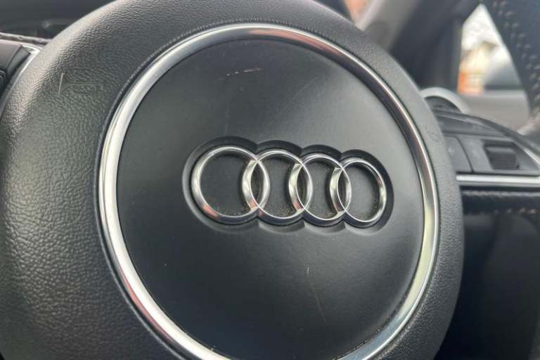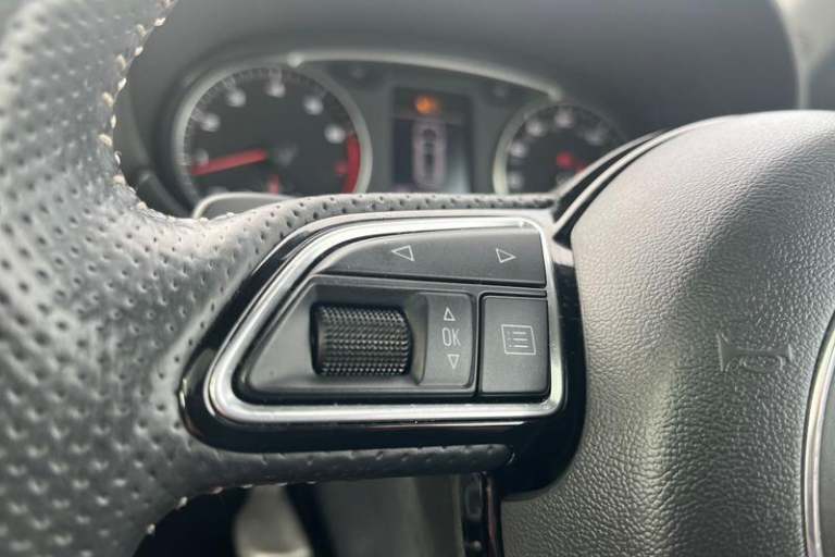 Audi drive select, Cruise control, Driver's information system, Electro-mechanical PAS, Low washer fluid indicator, Service interval indicator, Voice control system, Adaptive brake lights, Body coloured bumpers, Body coloured door mirrors, Electric adjustable door mirrors, Electric front windows, Front fog lights, Heat insulating glass, Heated door mirrors, Heated rear windscreen, Rear diffuser, Rear wiper, Roof spoiler, S Line body styling, Xenon plus headlights including automatic headlights, LED daytime running lights, LED rear lights, dynamic range control and headlight washers, 12V Accessory socket in centre console, Adjustable rear head restraints, Black cloth headlining, Cupholders in centre console, Door sills trims with aluminium inlays, Front floor mats, Front head restraints, Front seats - 'Easy Entry', Height adjustable front seats, Illuminated glovebox, Isofix attachments on outer rear seats, Jack and tool kit, Leather gear knob, Leather handbrake, Lumbar adjustment for front seats, Rake/reach adjustable steering wheel, Split folding rear seats, ABS/EBD, Brake assist function, Driver and passenger side airbags, Driver/Front Passenger airbags, EDL, ESP with ASR, First aid kit, Front and rear seatbelt reminder, Front passenger airbag deactivation, Head airbags, Height adjustable front seatbelts, Rear three point seatbelts x 2, Tyre pressure monitor, Warning triangle