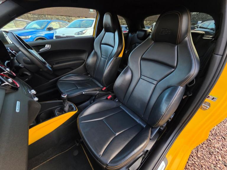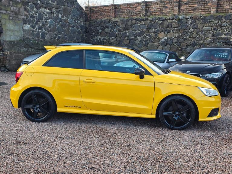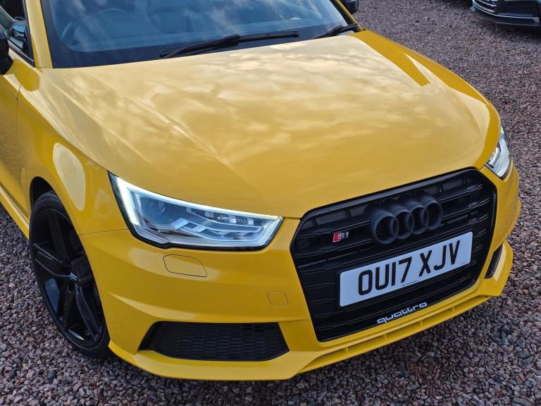 228BHP S1 Competition in Vegas Yellow with colour coded interior trim 2017 AUDI S1 2.0 TFSI COMPETITION QUATTRO £17950 26,900 miles Vegas Yellow 6 stamp service history Quattro all wheel drive system Black leather Super Sports seats with yellow stitching S design body styling with Competition double blade roof spoiler LEZ compliant Xenon headlights, navigation system, rear camera, Audi drive select, S sort suspension, cruise control, DAB radio, 18in alloys, auto headlights and wipers AA Cars Motor Dealer Warranty included with upgrades available Free 12 months AA Breakdown Cover Finance options available Part exchange welcome Rely Motors Ltd, Bankhead Buildings, Kinglassie, KY5 0UH relymotors.com 01592770834 [Phone number removed] [Email address removed. Click Email button to contact us.] Specification includes 18in Alloy Wheels 5 Arm Wing Design Matt Black Finish Diamond Cut, AMI Audi Music Interface, AUX IN Socket, Air Vent Sleeves High Gloss Black, Aluminium Trim for Control Switches Glove Compartment Door Handles Door Sills, Audi Drive Select, Body Styling S Design, Cloth Headlining in Black, Concert Radio, Connectivity Package, DAB Digital Radio, Display Screen 6.5in High Gloss Black, Door Mirrors Electrically Adjustable and Heated, Door Sills with Aluminium Inlays and S1 Logo, ESC Electronic Stabilisation Control, Electronic Climate Control, First Aid Kit and Warning Triangle, Front Passenger Airbag Deactivation Switch, Gear Knob S Specific, Glovebox Illuminated, Handbrake Grip Leather, Head Restraints Rear, LED Interior Light Package, Light and Rain Sensor, Mobile Telephone Preparation Bluetooth Interface, Mono.pur Centre Console and Door Armrests, Non Smoking Package, Pedals in Stainless Steel, Privacy Glass, Rear Fog Lights, S Sports Suspension with Adjustable Dampers, S1 Logo on the MMI, SD Card Reader x2, Seat Belt Height Adjustment for Front Seats, Seat Belt Monitoring, Seats Front Easy Entry, Secondary Collision Brake Assist, Split Folding Rear Seat, Spoiler Roof Double Blade, Styling Package High Gloss Black, Thatcham Category 1 Alarm and Immobiliser, Tyre Pressure Monitoring System, Xenon Plus Headlights