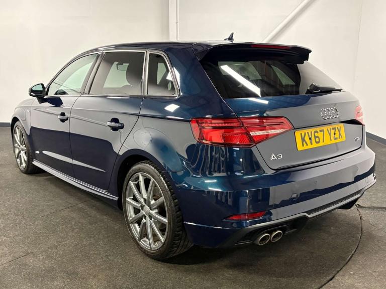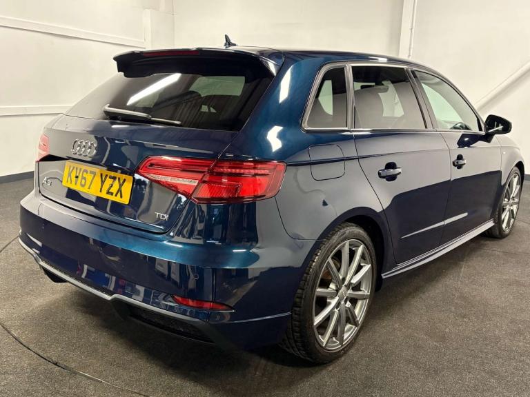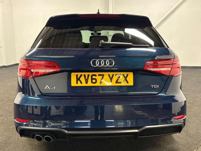 Audi A3 2.0 TDI Black Edition Sportback 5dr Diesel Manual Euro 6 (s/s) (150 ps) KV67 YZX 77,500 miles 2017 (67) Hatchback Manual Diesel Blue This Audi A3 Black Edition is a smart, well-maintained example finished in a striking metallic blue with the desirable Black Edition styling. Powered by the strong and efficient 2.0 TDI engine, it offers excellent fuel economy, low running costs and confident performance, making it ideal for both commuting and longer motorway journeys. Being ULEZ compliant, it’s perfectly suited for city driving without additional charges. FEATURES ?18in Diamond-Cut Black Edition Alloys ?LED Headlights & Dynamic Rear Indicators ?Audi Drive Select ?Rear Parking Sensors ?Dual-Zone Climate Control ?MMI Navigation ?Bluetooth/USB/DAB Radio ?Cruise Control ?Electric Handbrake with Auto Hold ?Privacy Glass ?Black Styling Pack ?S Line Sport Seats Every Liberty Green car is hand-selected, HPI clear, and prepared to a high standard for total peace of mind. Each vehicle undergoes a detailed inspection and comes with a minimum three-month warranty, extendable for up to three years. We also offer nationwide delivery, competitive finance, and a straightforward, customer-focused buying experience.
